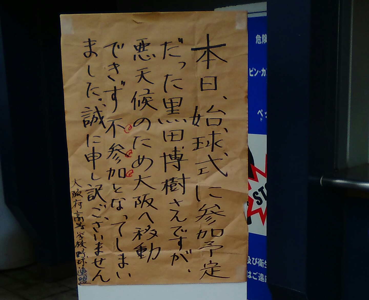 雨で来られへんのは仕方ないけど、代わりの元プロ野球でちょっと名の知れた選手探そうよ~、大阪ならナンボでもおるやろうに~なんて恨み節。