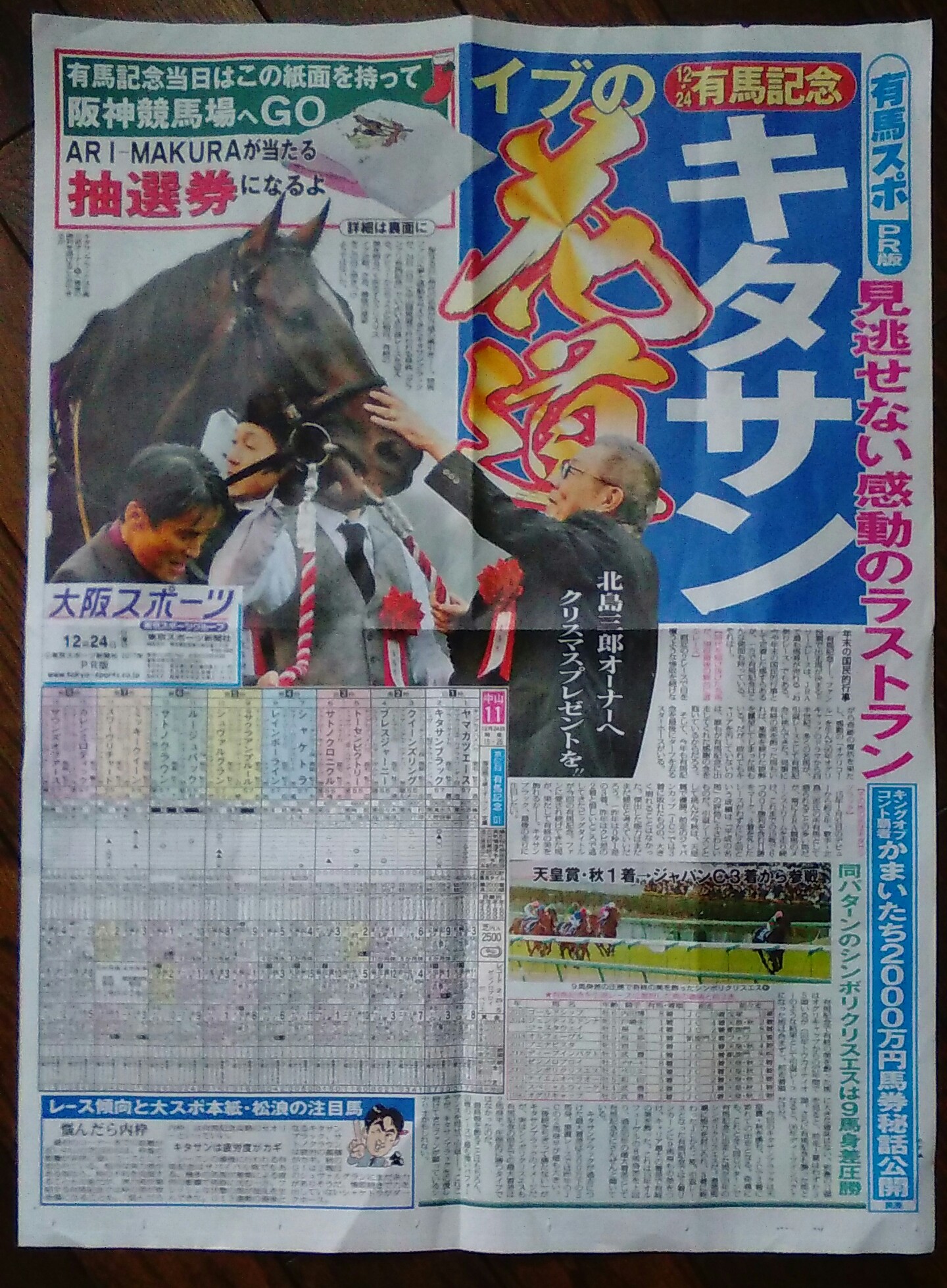 今日、有馬記念やなーと思ってはいたのですが、ふと時計を見ると、まもなく3時半。