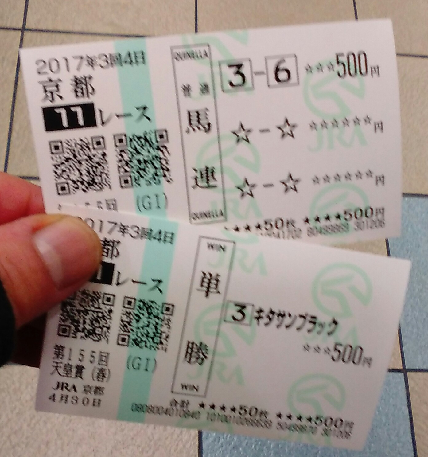 せっかくの天皇賞やから、はりこんで(?)500円ずつ!
