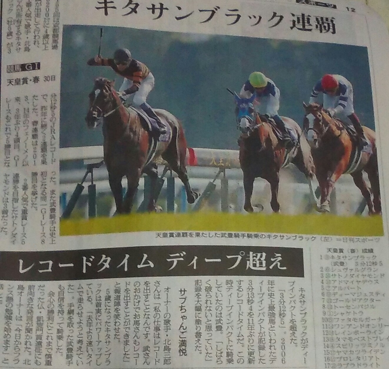 キタサンブラックは、ディープインパクトのレコードタイムを塗り替える3分12秒5タイムで春の天皇賞を連覇。