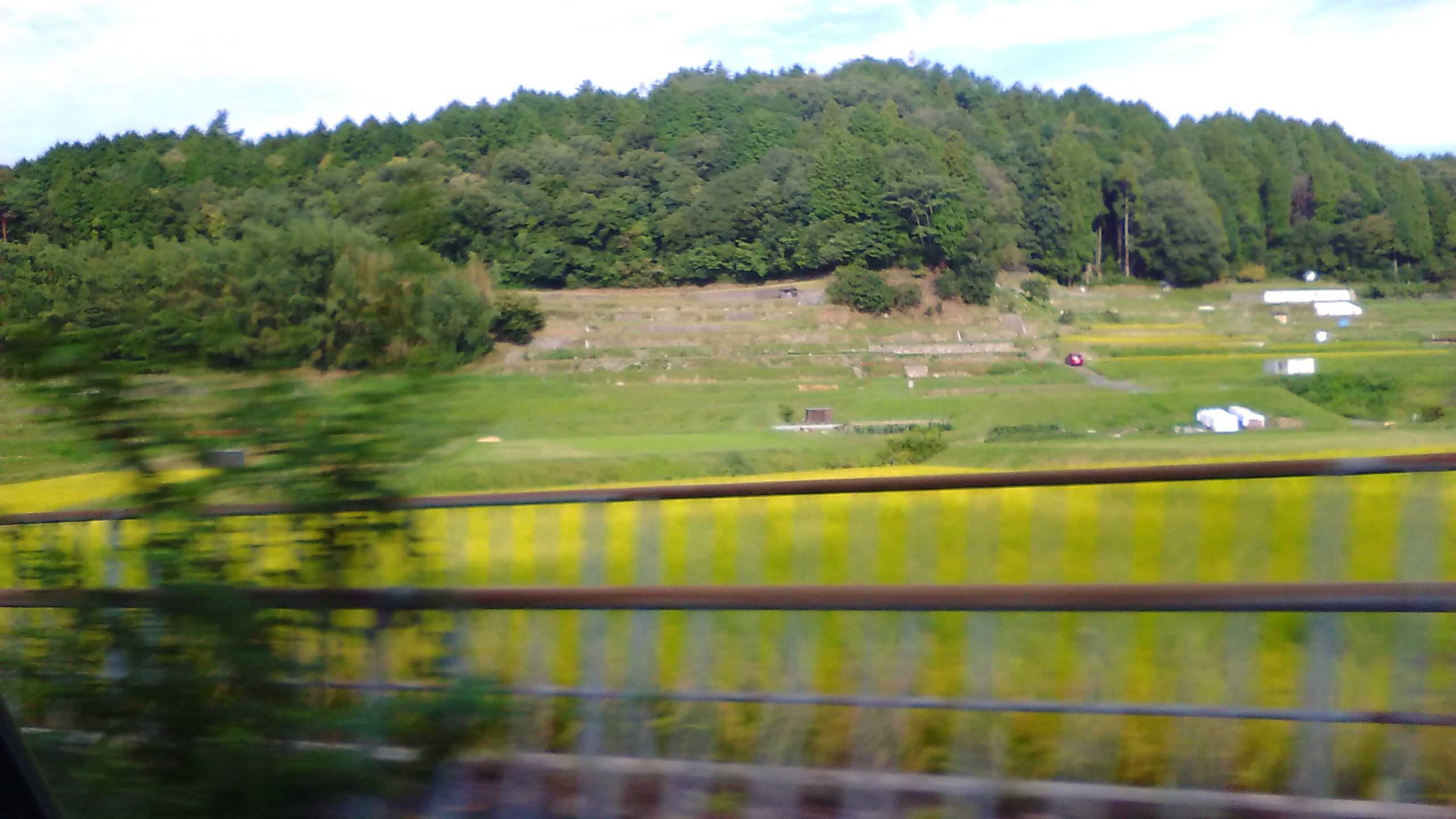 グランドのある山を車で上ってゆくと、田んぼのには収穫直前の稲が。