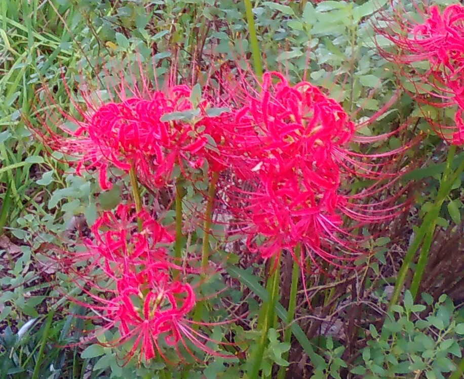 遠目にも彼岸花の赤が鮮やかです。