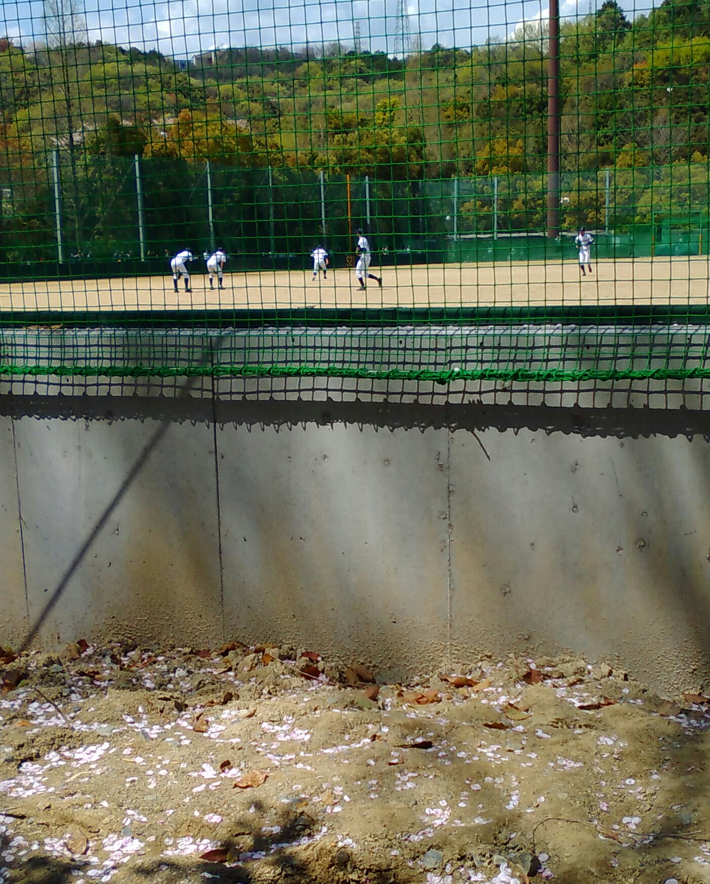 グラウンド中へも花びらが舞い散り、ひばりやウグイスの鳴き声が聞こえる中でのプレイとなりました。