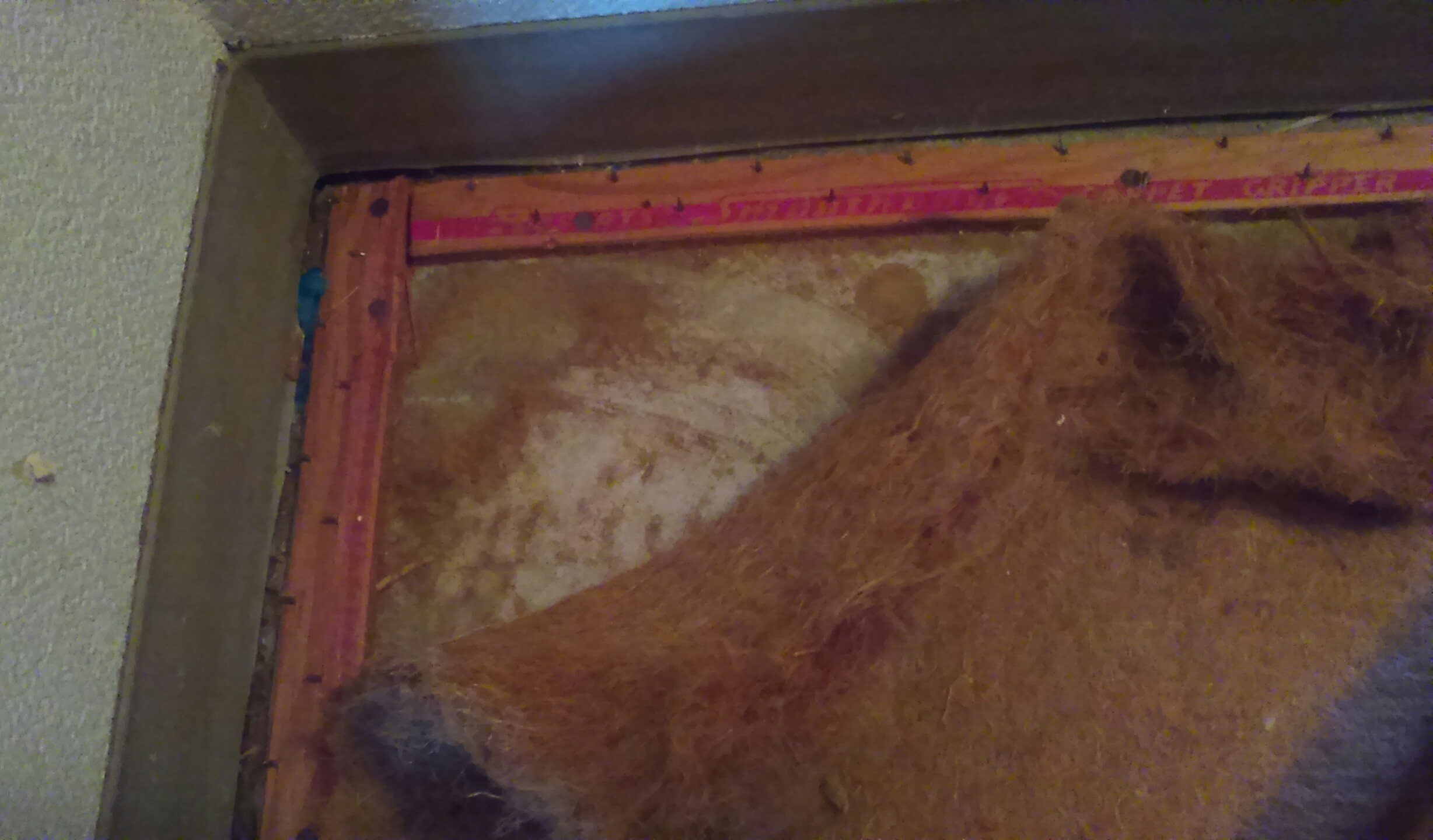 絨毯とフェルトの他は、絨毯を固定するための板や釘が壁沿いに張りめぐらされているだけです。