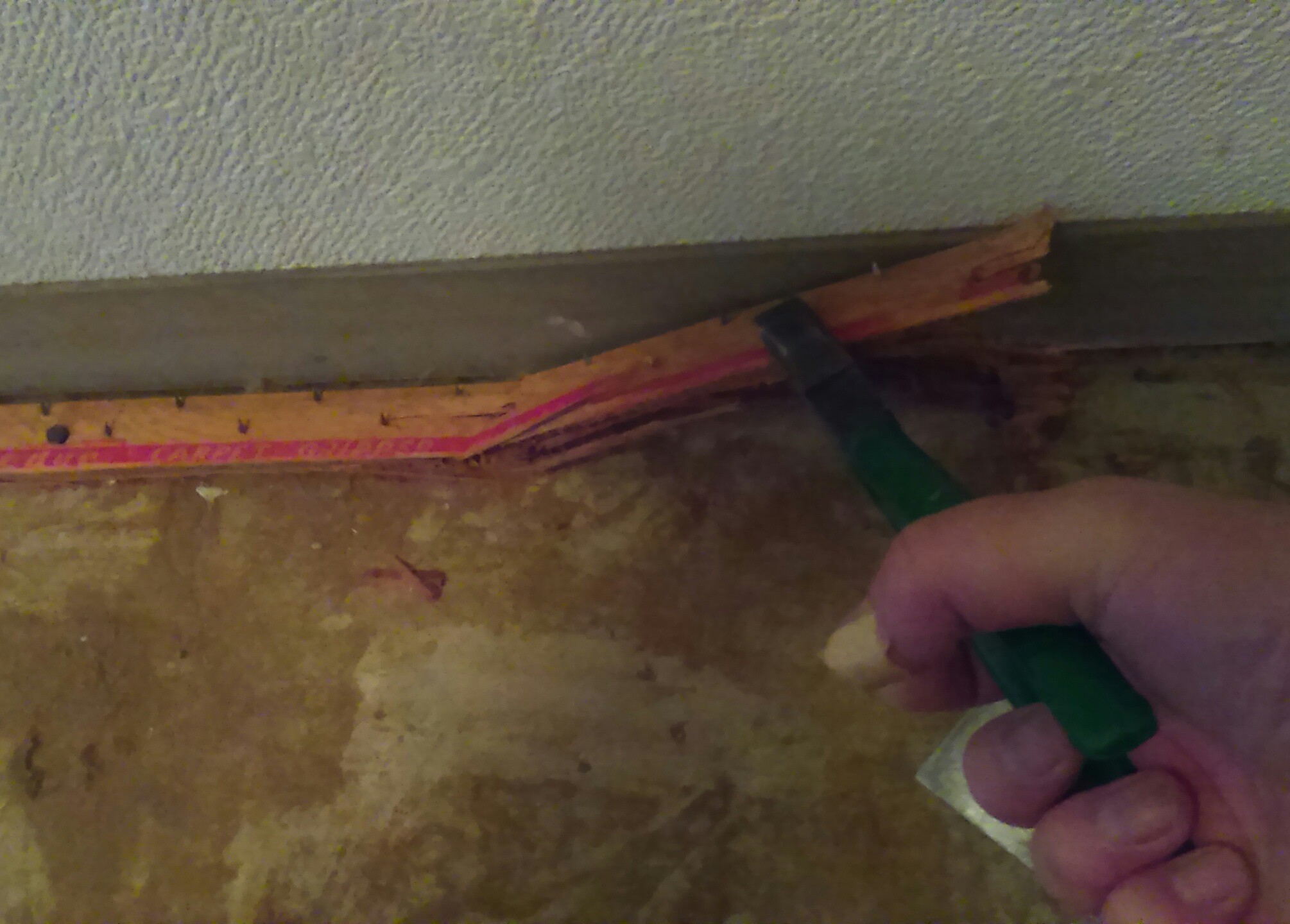 ここまでくれば、後は絨毯を止めつけていた周囲の板を剥がすだけ!