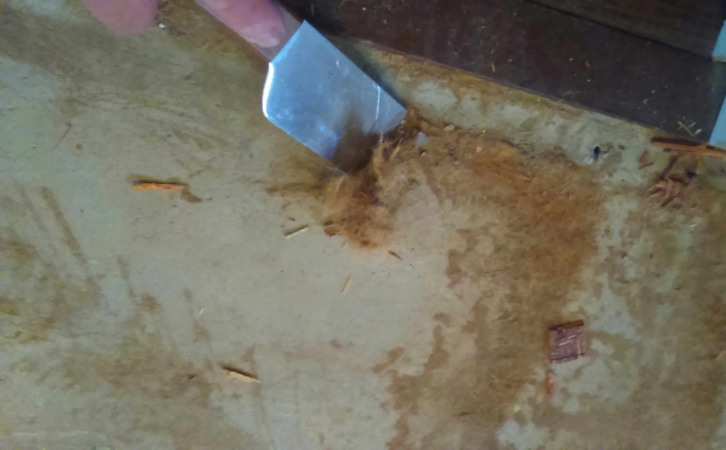 こうして、板もはずし、釘も抜き、へばりついていたフェルトもヘラでこすり取り、