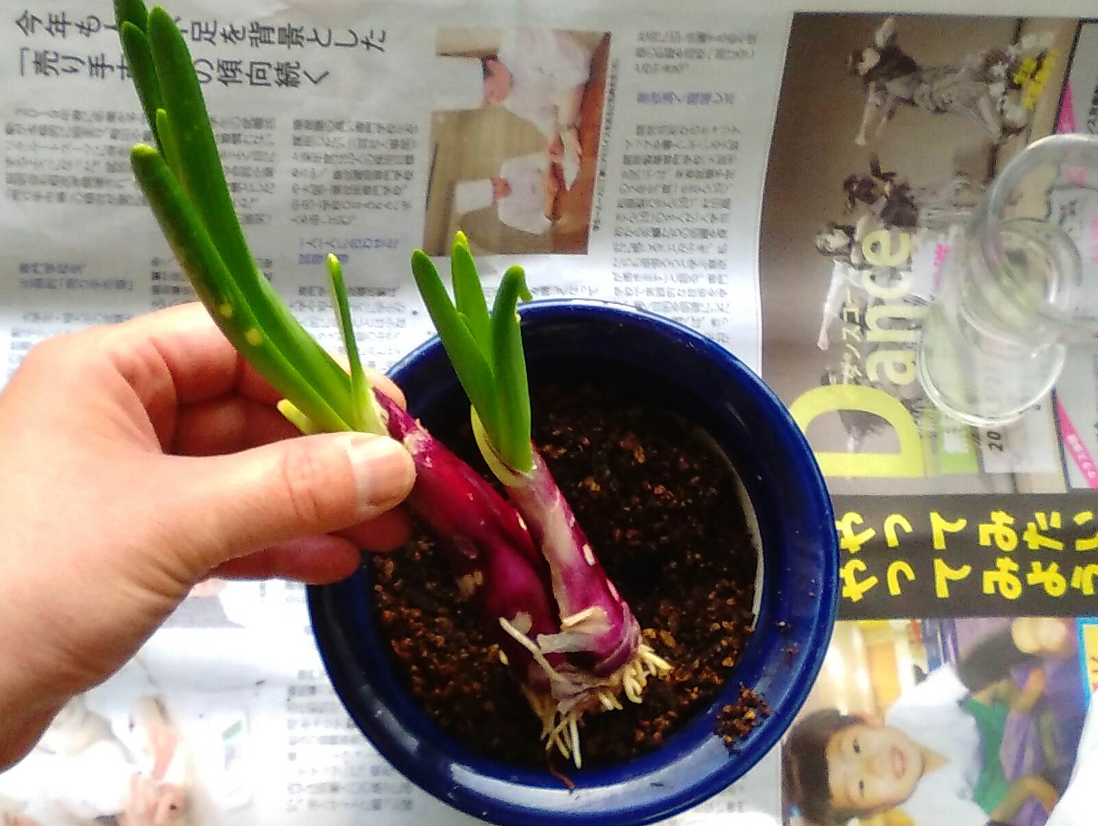 そこで、せっかくだからと、根のついた青ネギを植えたんです。