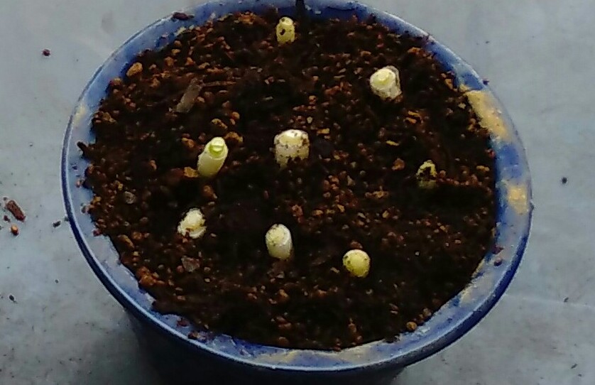 時たま水を替えながら見守っていると、数日後、黄色から黄緑に変わり
