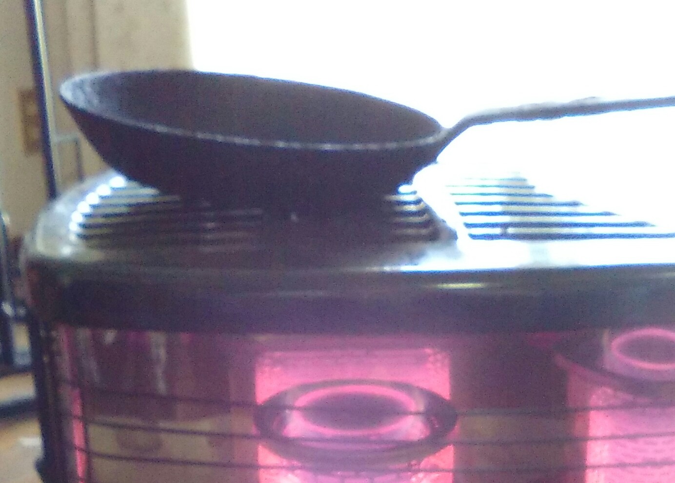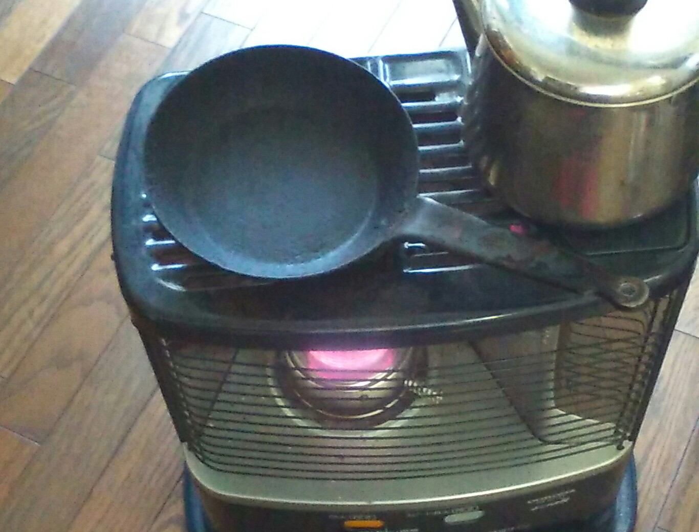 (注:灯油ストーブの正しい使い方ではありませんので真似しないで下さい。汗)