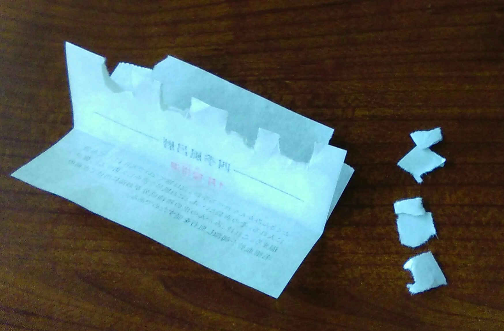 コピー用紙などでもできなくはないけど、日めくりカレンダーの紙は薄いけど丈夫で震えやすくて、紙笛に最適なんですよね~。