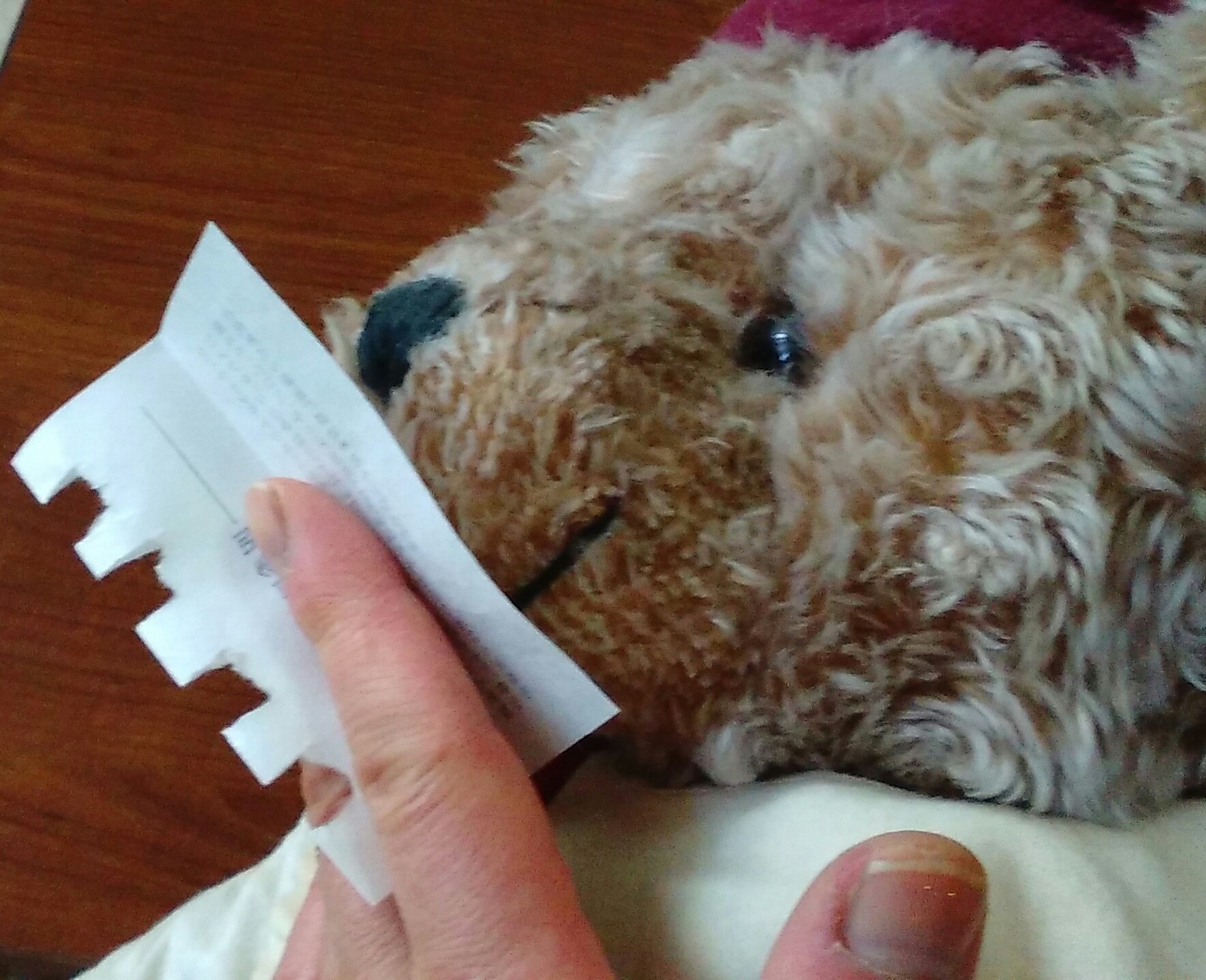 ぬいぐるみの熊に吹いてもらうとすると、こんな感じ。