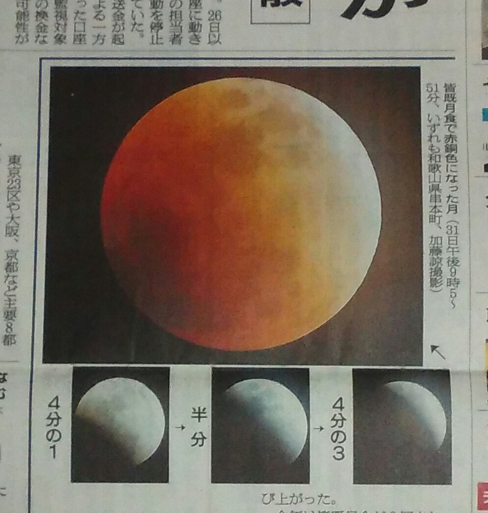 1年目の節目に何を書こうかけっこう悩んでいたのですが、昨日がスーパー・ブルー・ブラッドムーンと知って即、月食に決めました。
