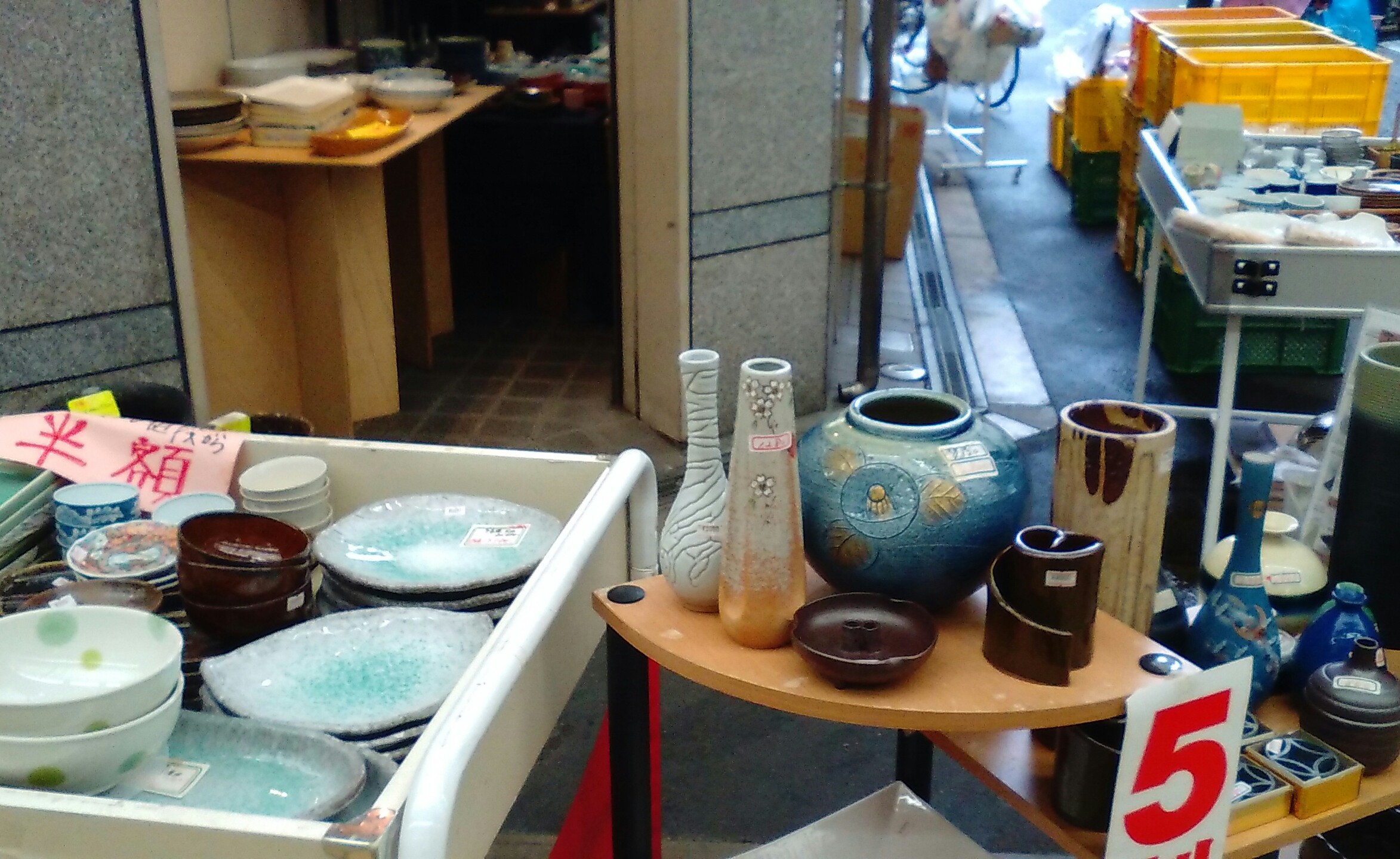 京橋商店街を通り過ぎようとして目にとまった食器の店。