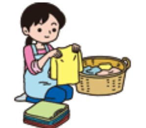 乾けば、そばに置いておいた小さめのカゴにポイっと放り込むだけ。