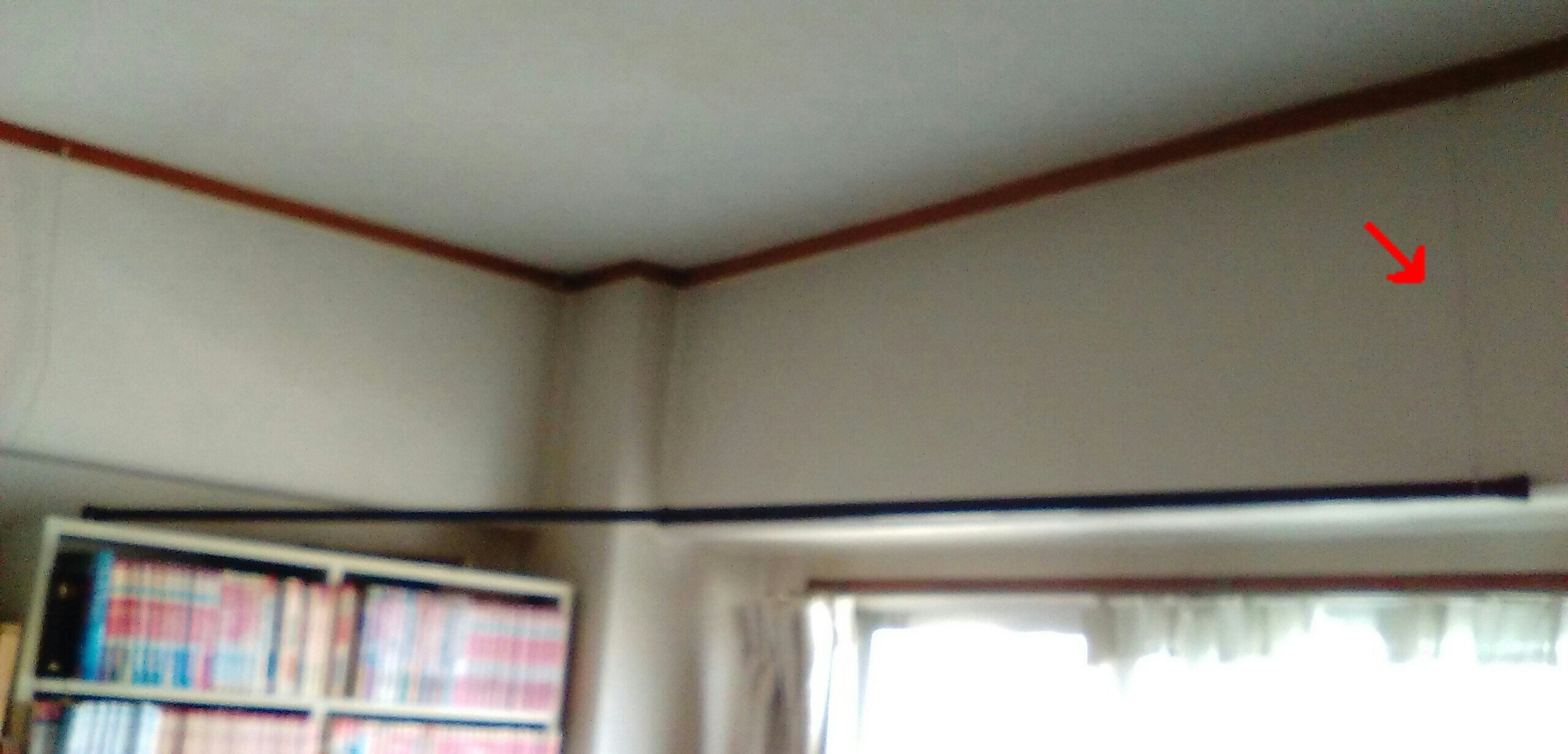 白い壁に白い針金なのでわかりにくいのですが、↘の部分が針金です。