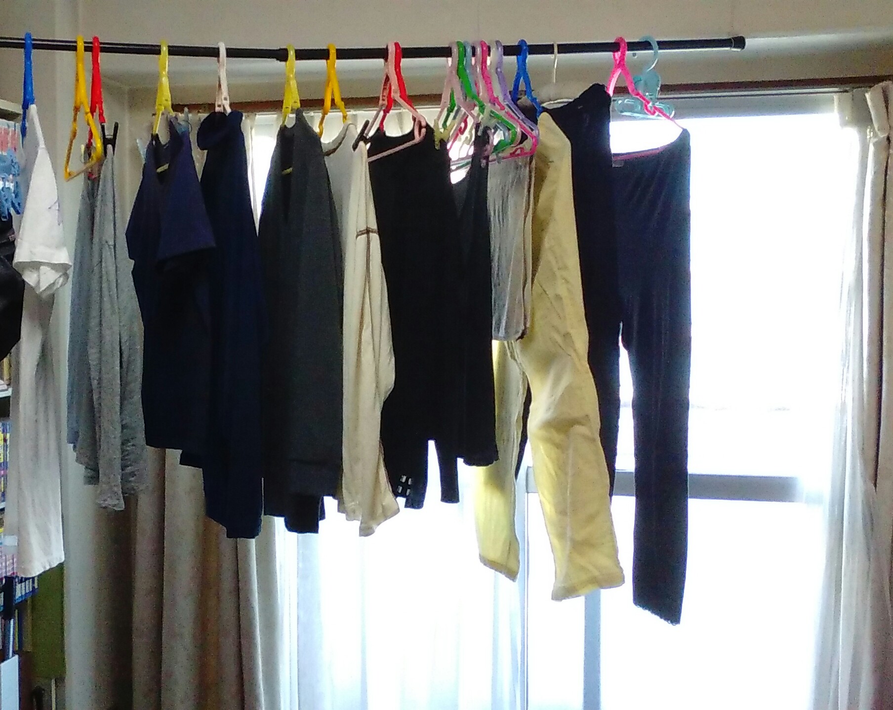 そして、部屋干し用に使っていた物干し竿を収納用にしたため、新たに部屋干しスペースを作らないといけません。