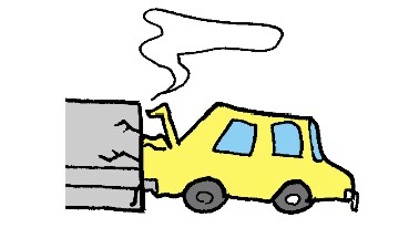 なんとその車、ハンドルを切りそこねて自動車道の右側の壁?に激突したんです。