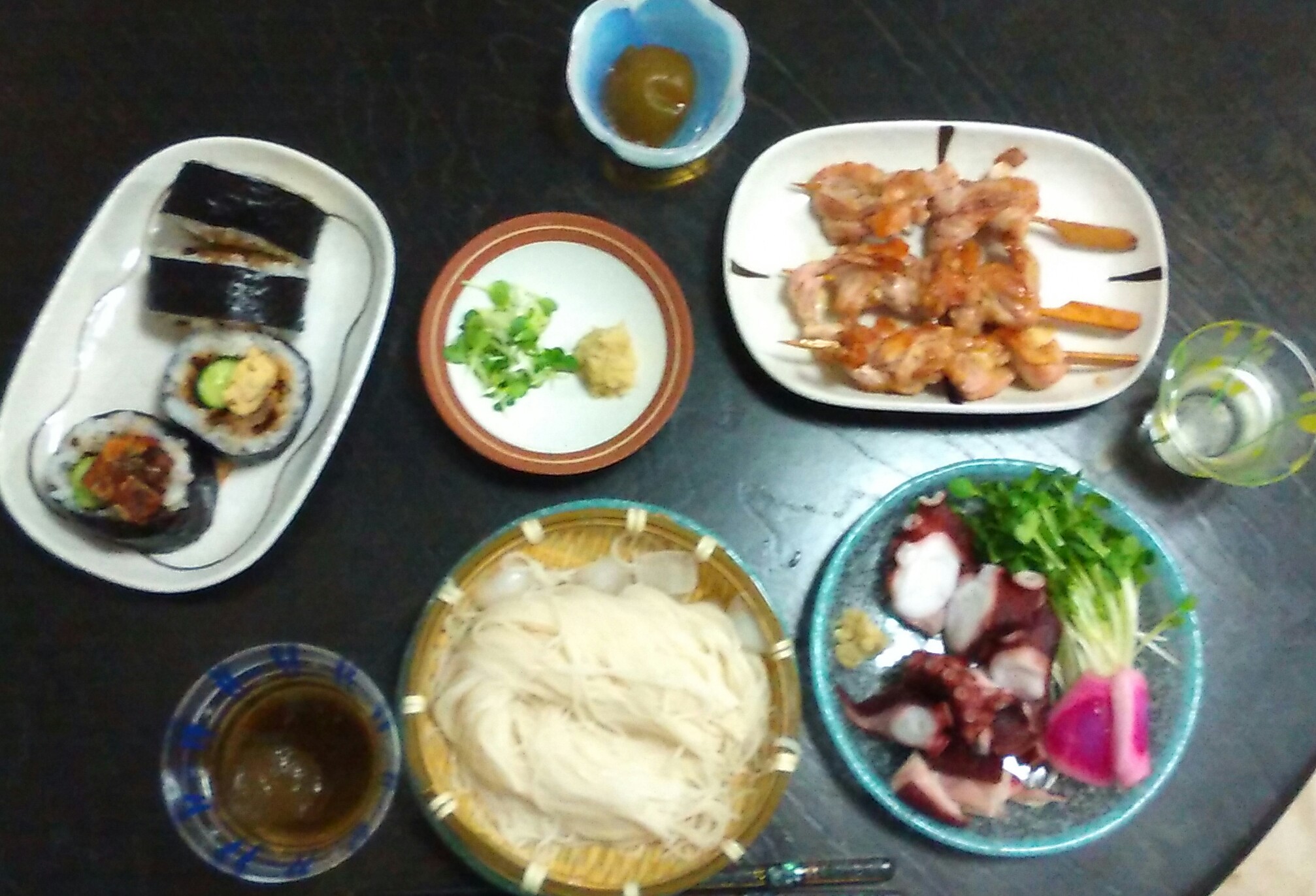 昔の賑わいを懐かしみながら、お祭りっぽい食事をこまごまと並べ、息子と二人の天神祭の日の夕げです。…と書こうと思っていたのですが、息子は野球の練習帰りにチームの仲間と夕飯を食べて帰るとの連絡が。