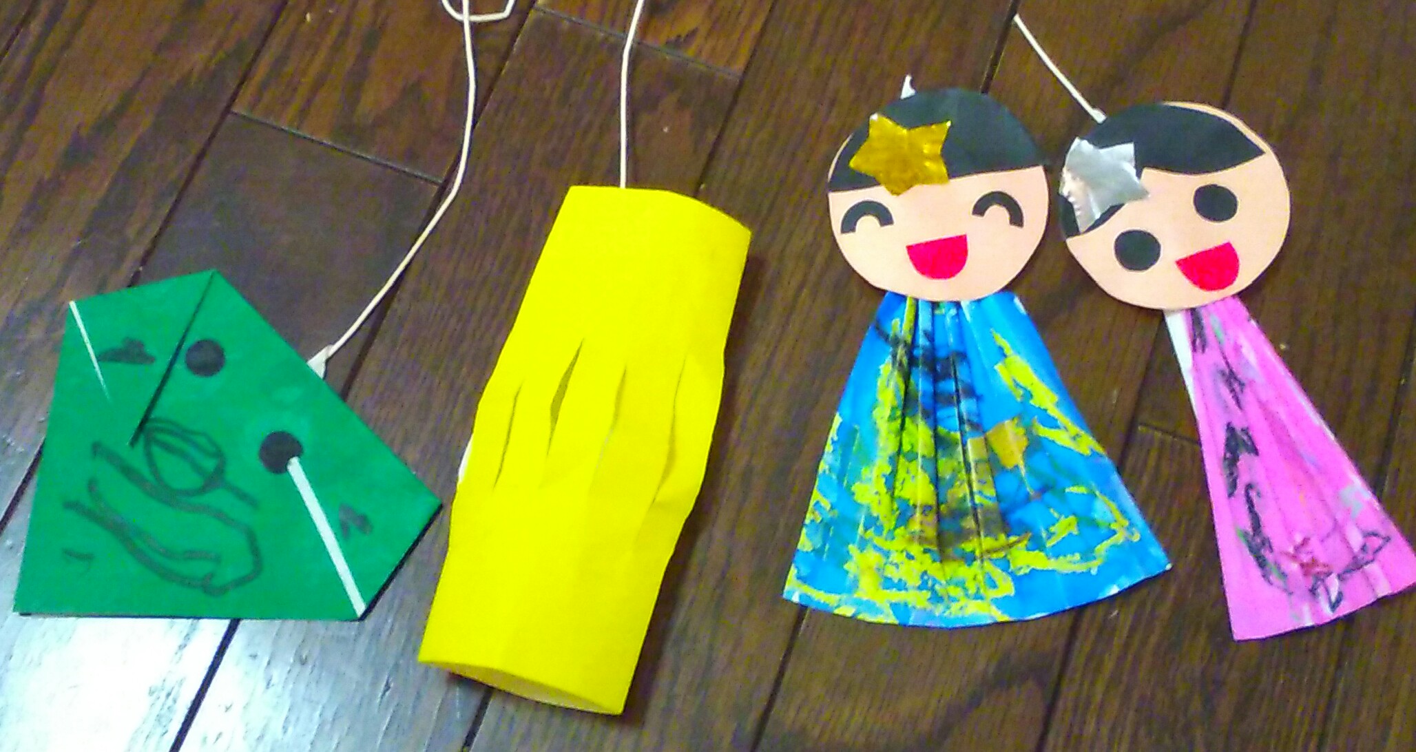 短冊に願い事を書いて、織姫と彦星などを作って吊るした小さな笹を、保育園から持って帰ってきました。