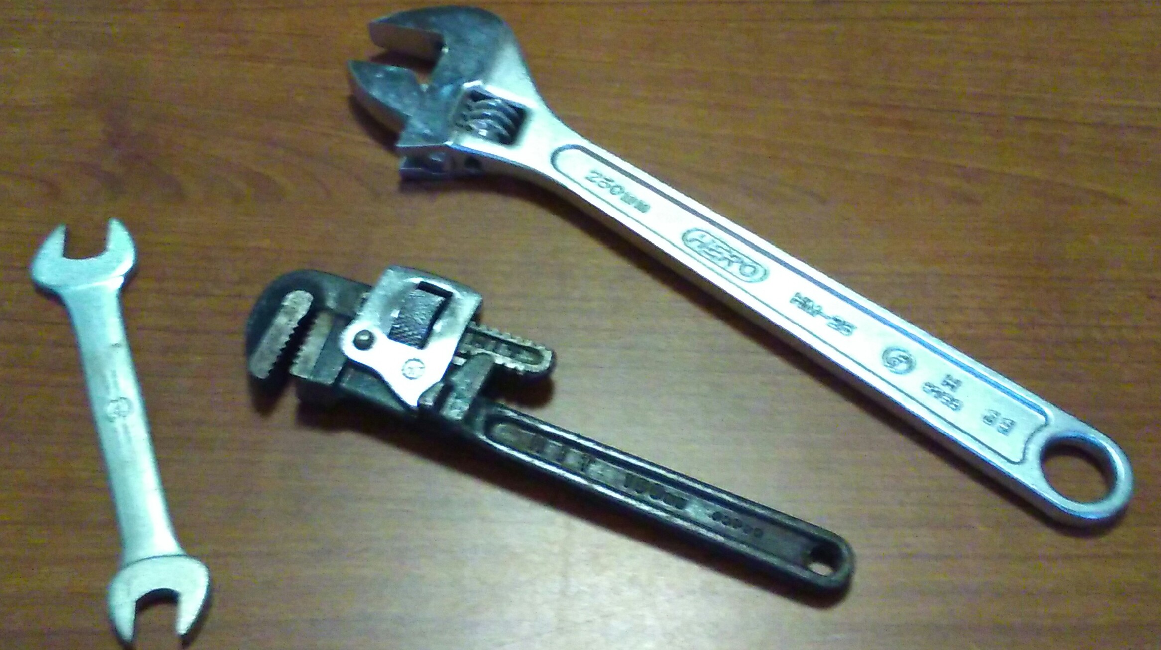 なんとか合いそうなモンキレンチを使って回そうと試みますが、全く歯が立たないまま便器を抱きかかえる姿勢をとること1時間。