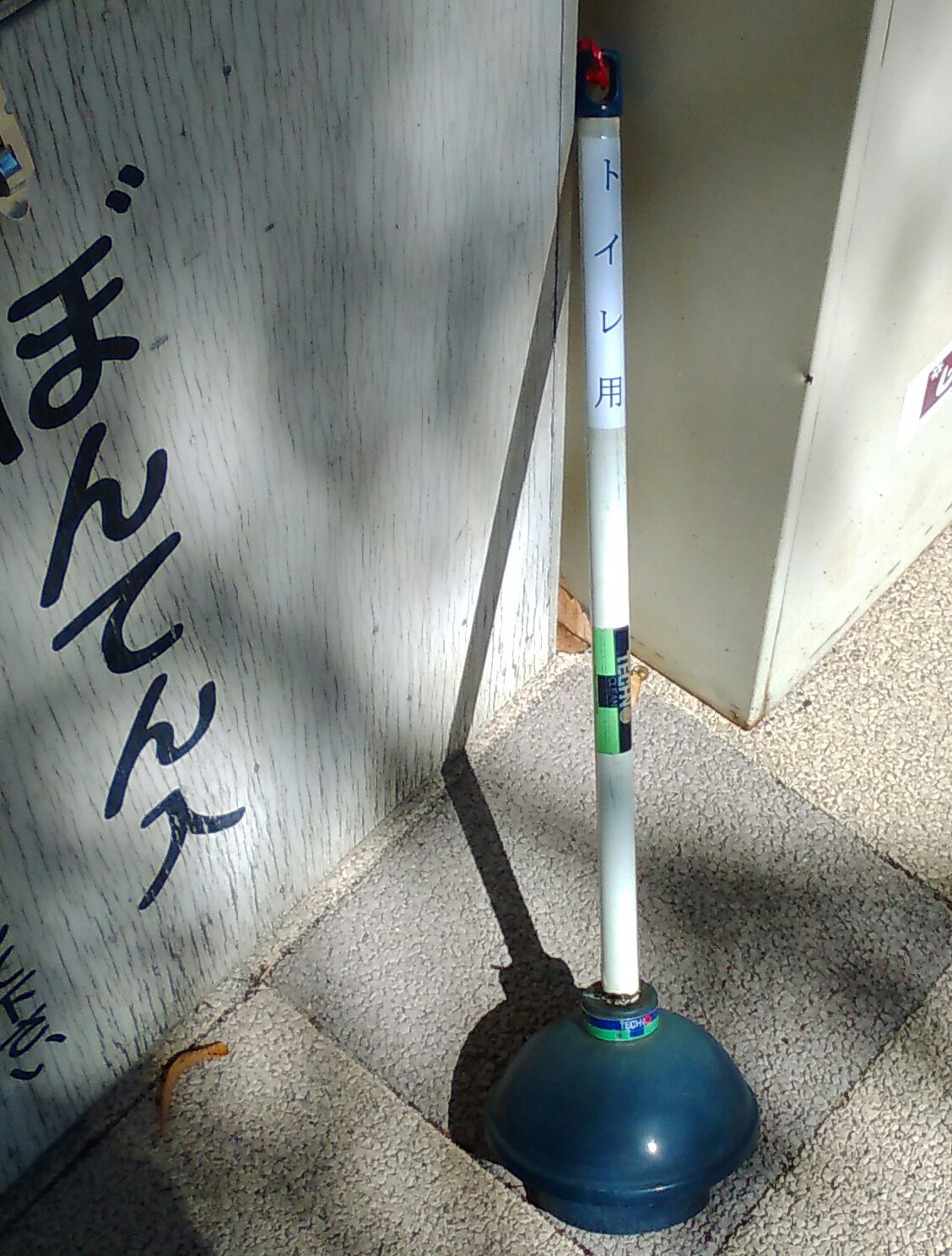 借りてきたぼんてん(トイレ詰まりをなおすためのやつ)でシュコシュコすると詰まりは取れ、水が流れはじめました。