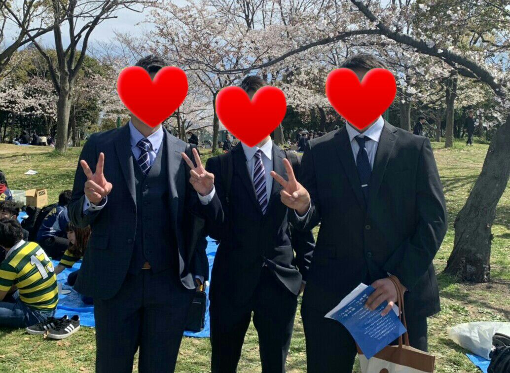 入学式後の大学生3人組の写真があります。