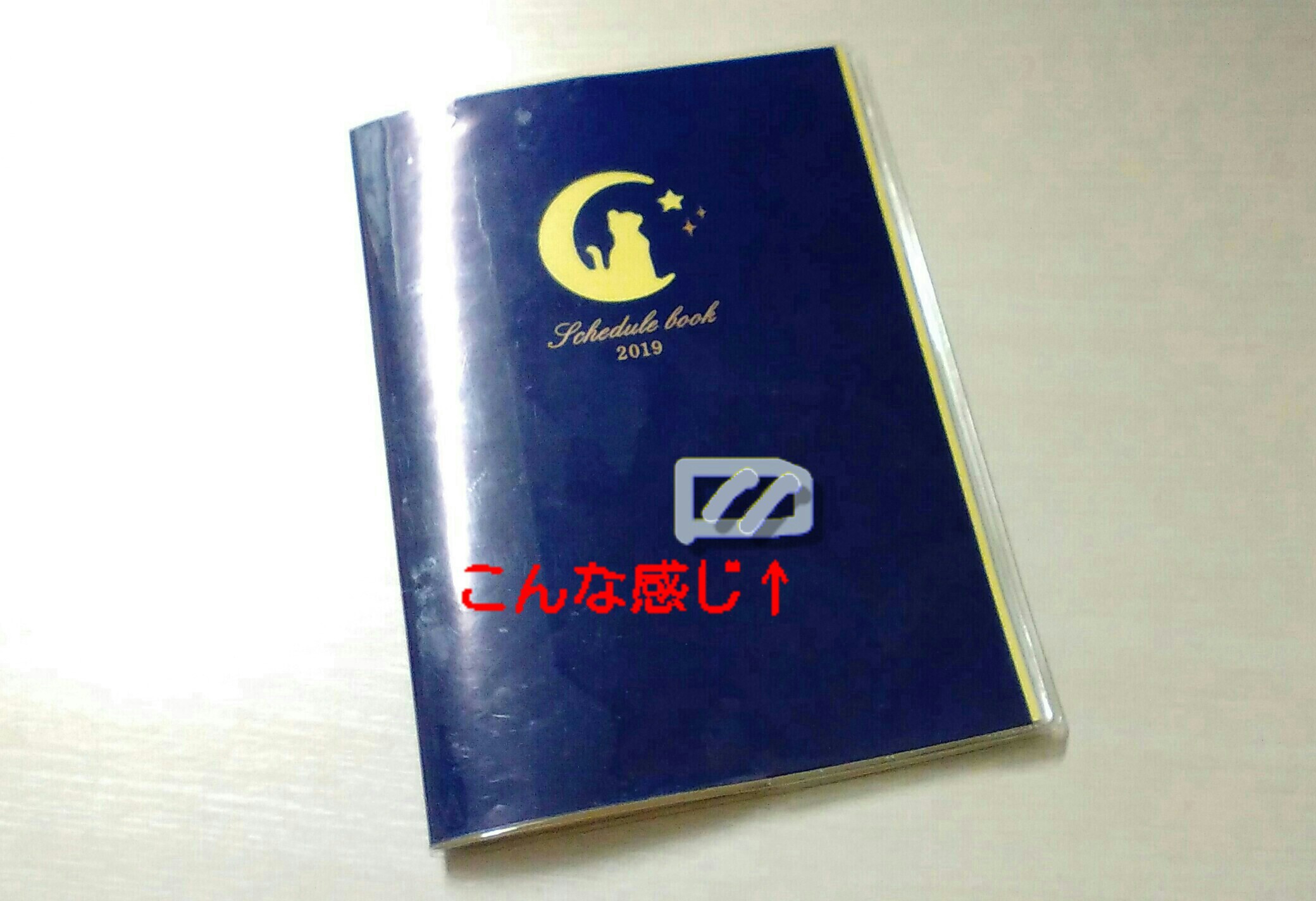 普段はあまり細かいことを言わないタチなのですが、新年におろそうと思ってた新しい手帳の(100円だけど)表紙に思いきりペタッて、あんましやん。。。