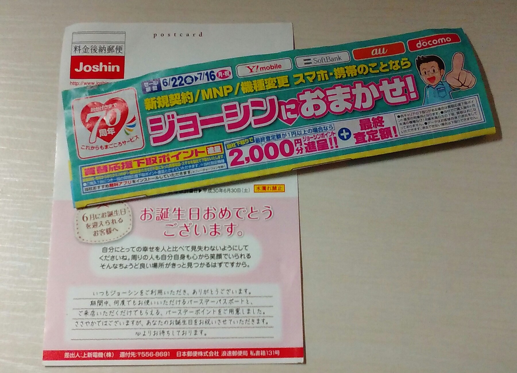 って宣伝しているように、時々タイガースのグッズがもらえたり、阪神が買った次の日にポイントがついたりするんで、ついついJoshin一筋だったりするわけです。