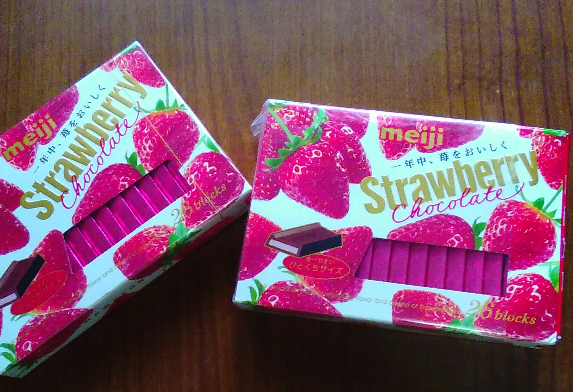 なんでも、自分の前を自転車で走ってた中年女性がストロベリーチョコを5箱落としたんやって。