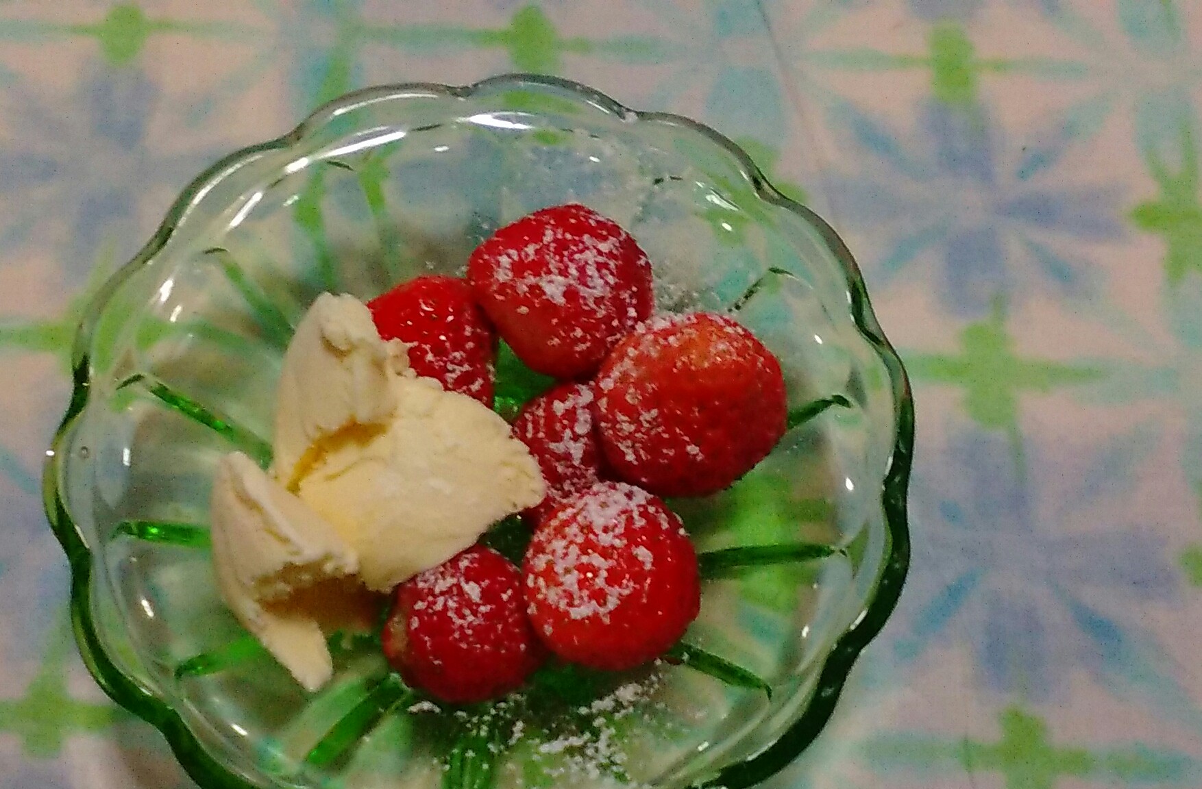苺にアイスを添えた、ささやかなお祝い気分の演出です。