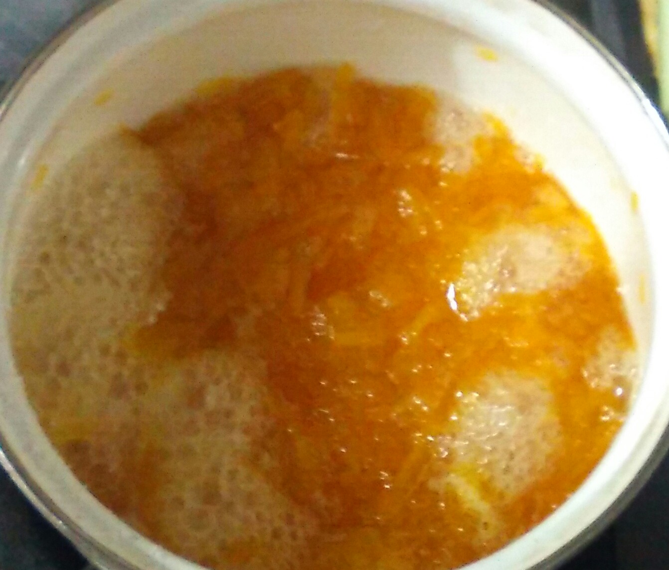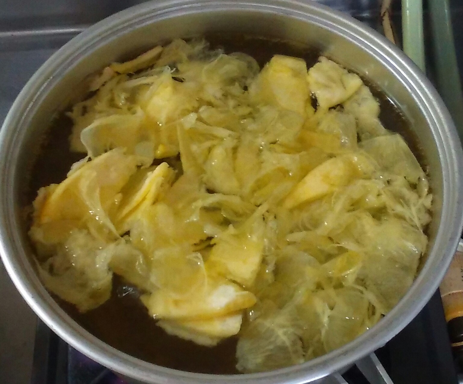 ⑥皮を食べてみて苦味が強ければ⑤を繰り返し、良ければ皮が指でつぶれるくらいまで煮る。