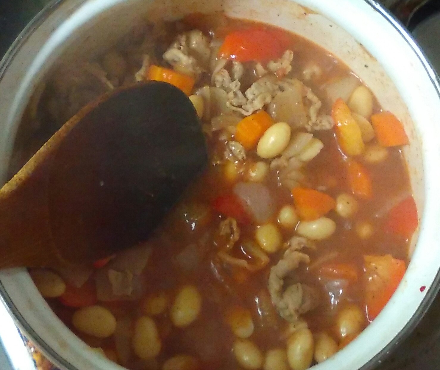 肉も豚でも牛でもいいし、豆も何でもいいみたい。