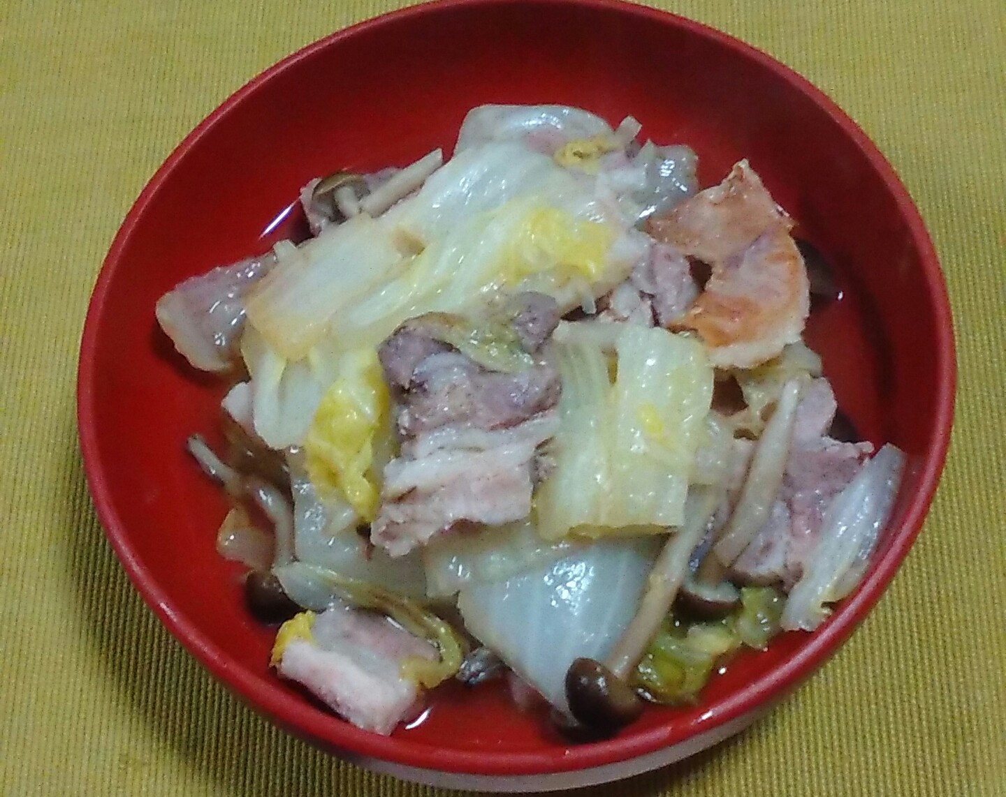 この『白菜と豚バラの蒸し煮』は、水もダシも使わず調味料は塩だけ。
