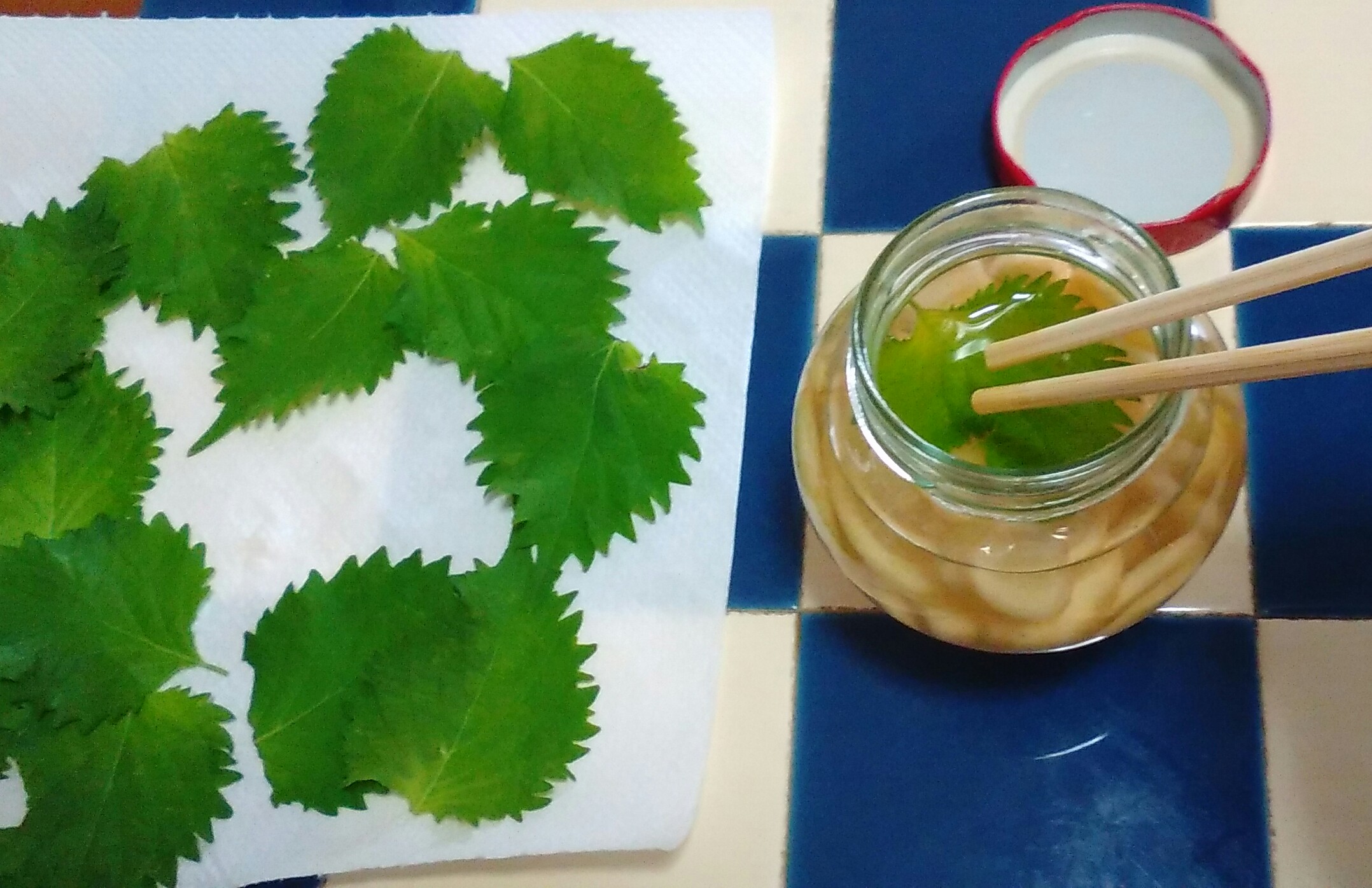 青ジソの成育が追い付かず、青ジソの収穫を待って、青ジソ以外の材料で途中までしか仕込めなかったんですね~。