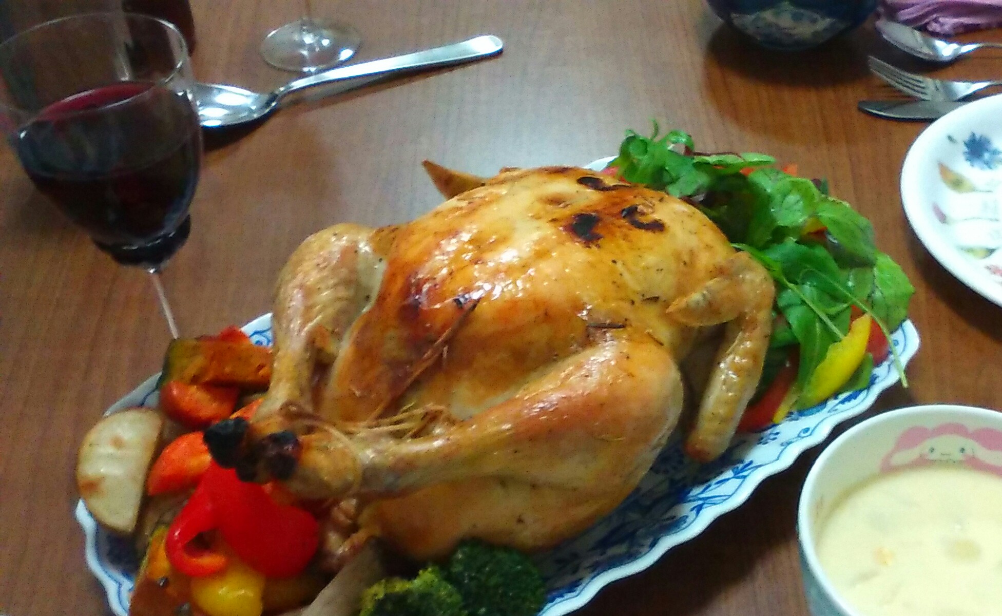 メインはクリスマスの定番、鶏の丸焼きです。