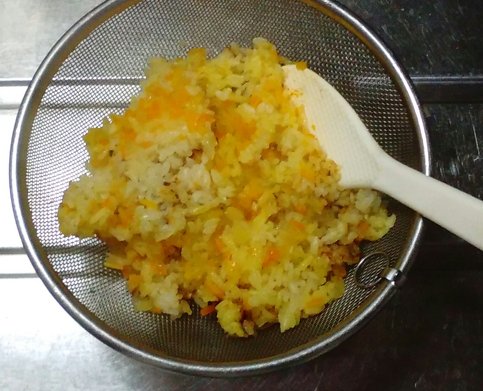 ③炊き上がれば8分蒸らし、ザルにあけて冷ましておきます。