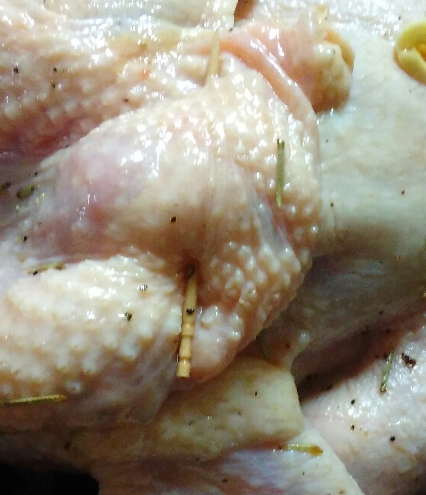 ①鶏の首の方の穴をつまようじで留めてふさぐ。