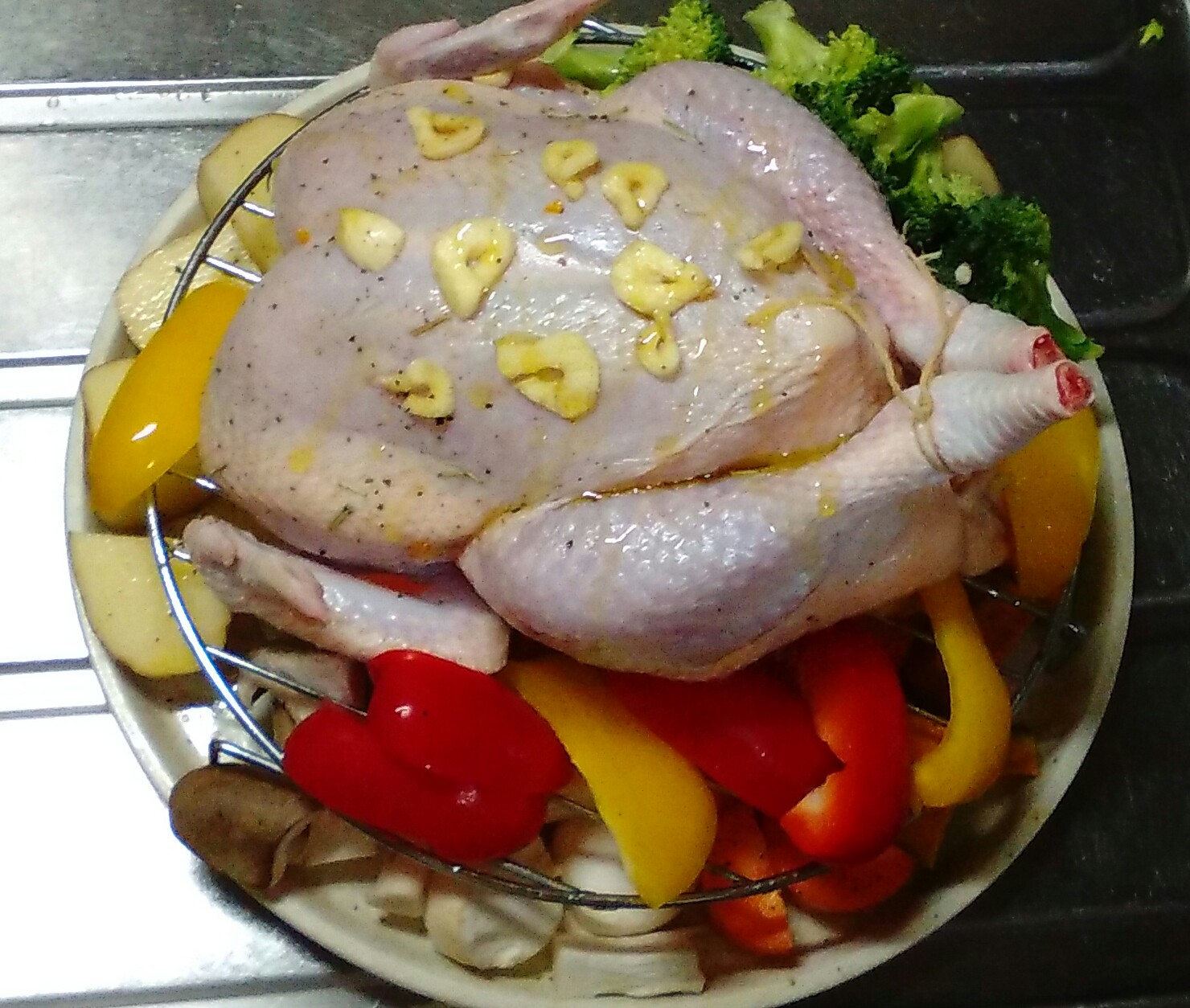 私は、パフリカ、じゃがいも、カボチャ、ニンジン、ブロッコリー、エリンギを乗せました。