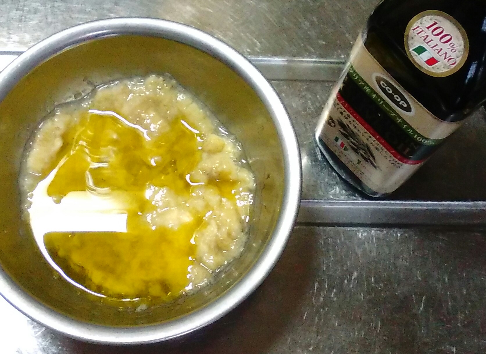③エクストラバージンオリーブ油を入れて混ぜる。