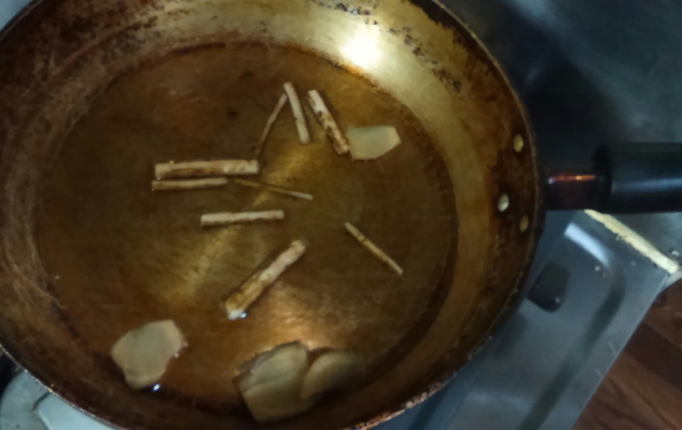 ①フライパンに予備酒と生姜とゴボウを入れ強火にかける。