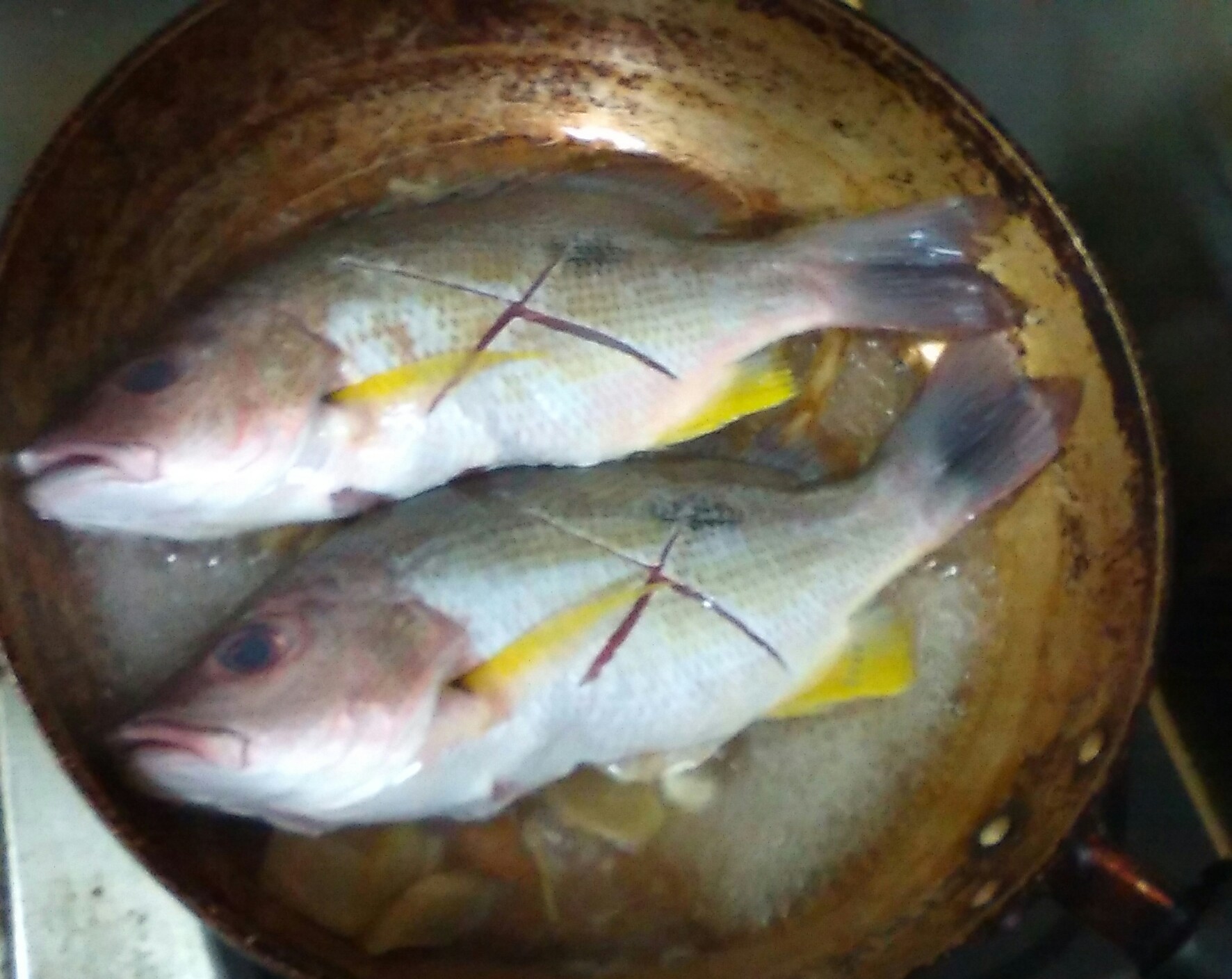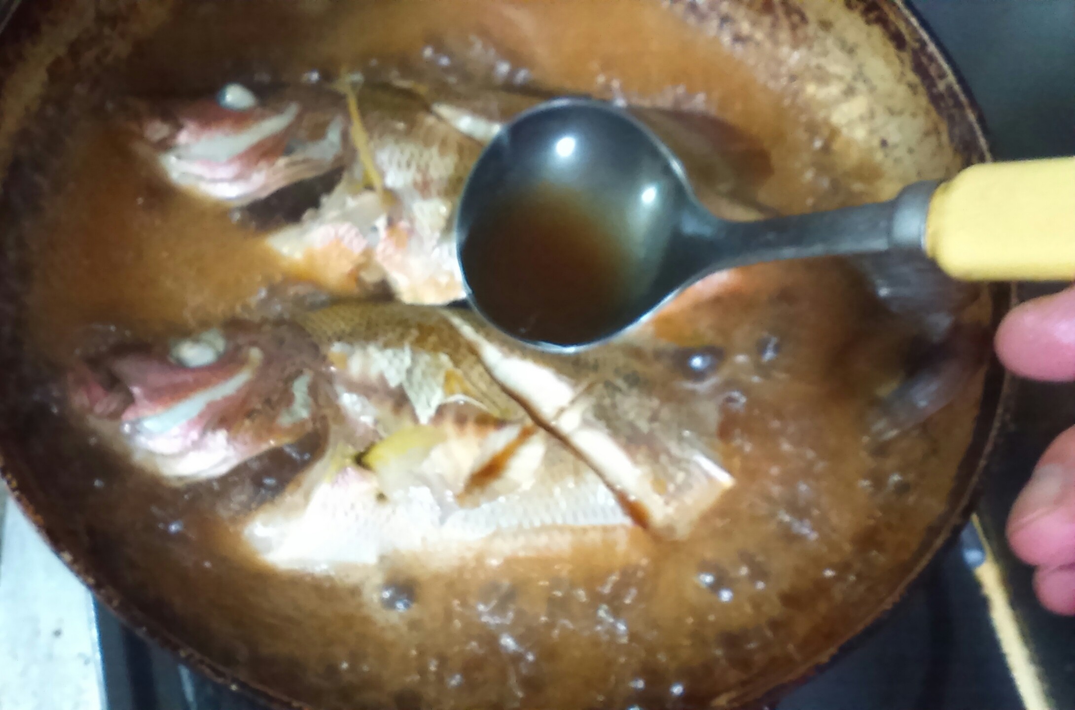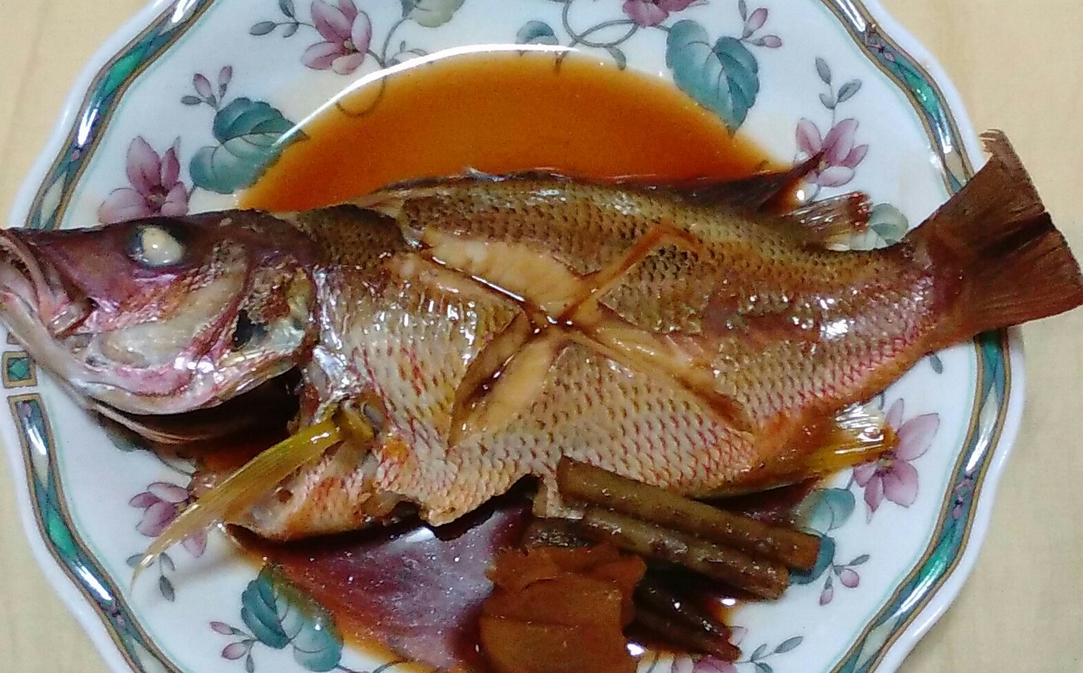 始めて食べるフエフキダイの煮付けは、心配していた臭みも全くなく、美味しい白身魚でした。
