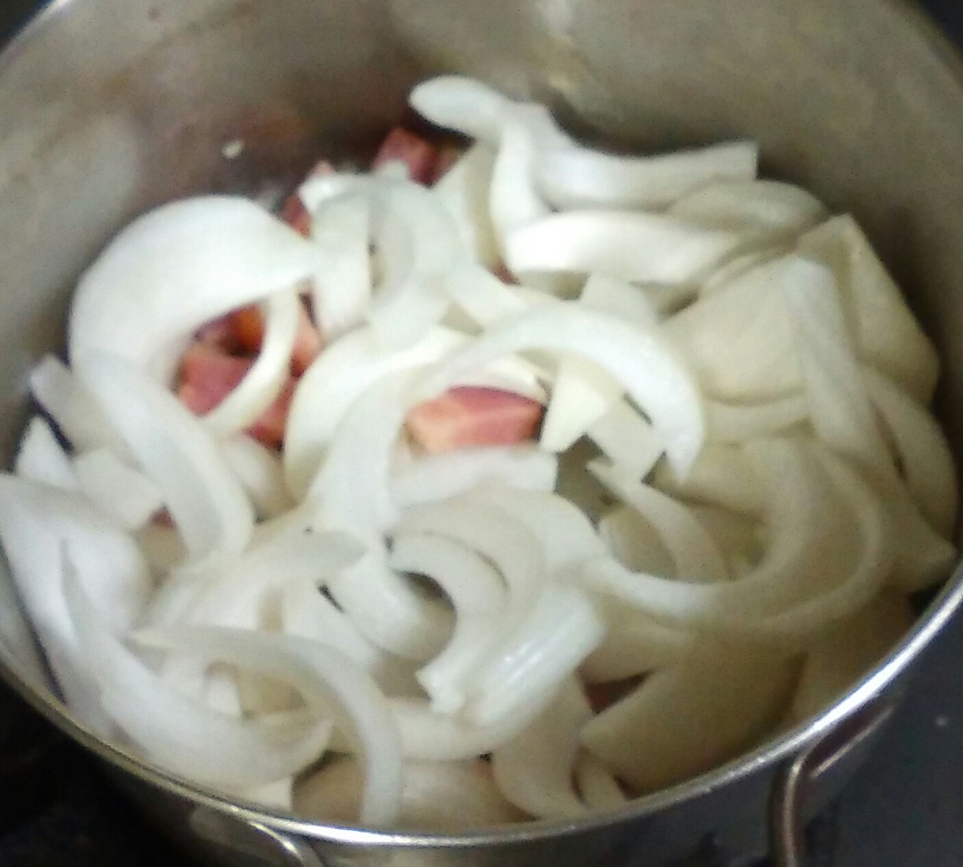ひねの玉ねぎを使う場合は、透き通るまで炒めて、えんどう豆を入れる前の煮る時間を長めにして下さい。