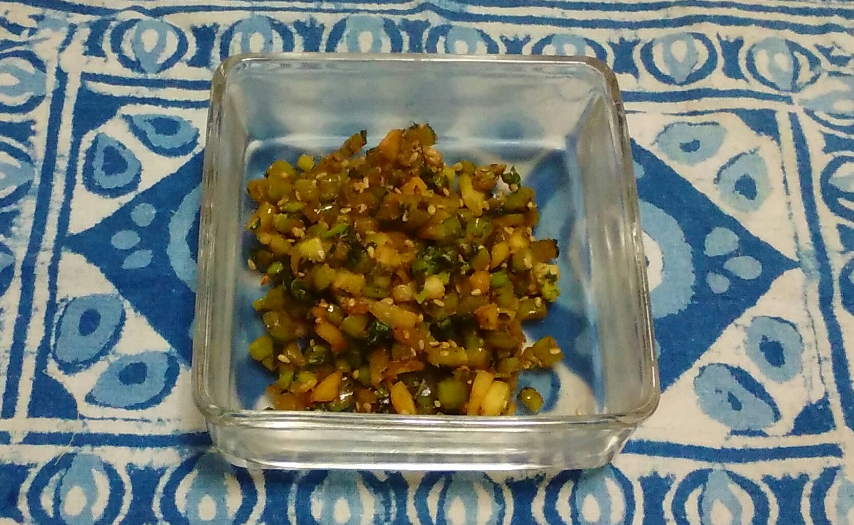このままではあまり美味しいものではないのですか、きざんでごま油と醤油とミリンで炒め、