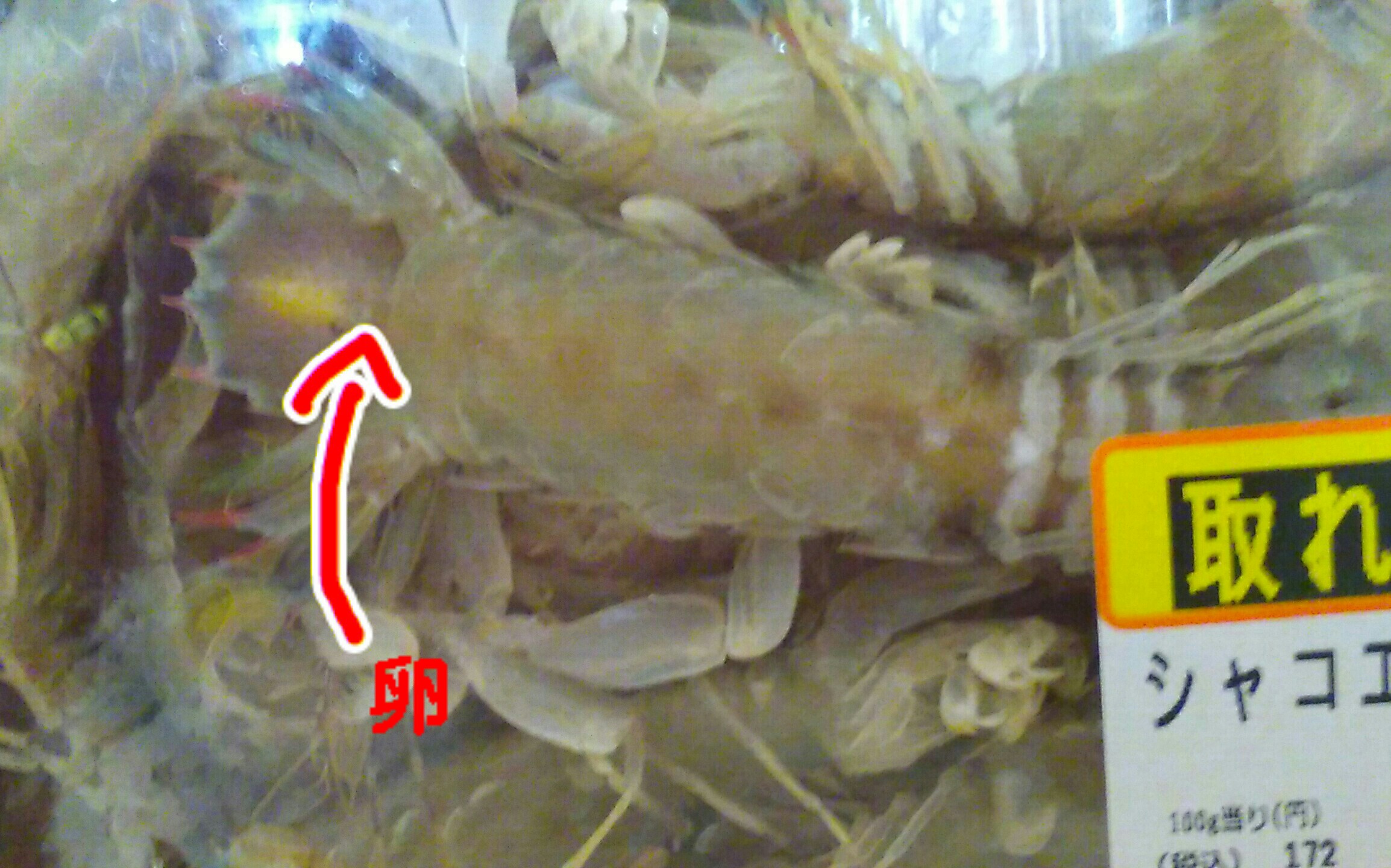 しかも、よく見ると卵が入っているメスも混ざっているみたいです。