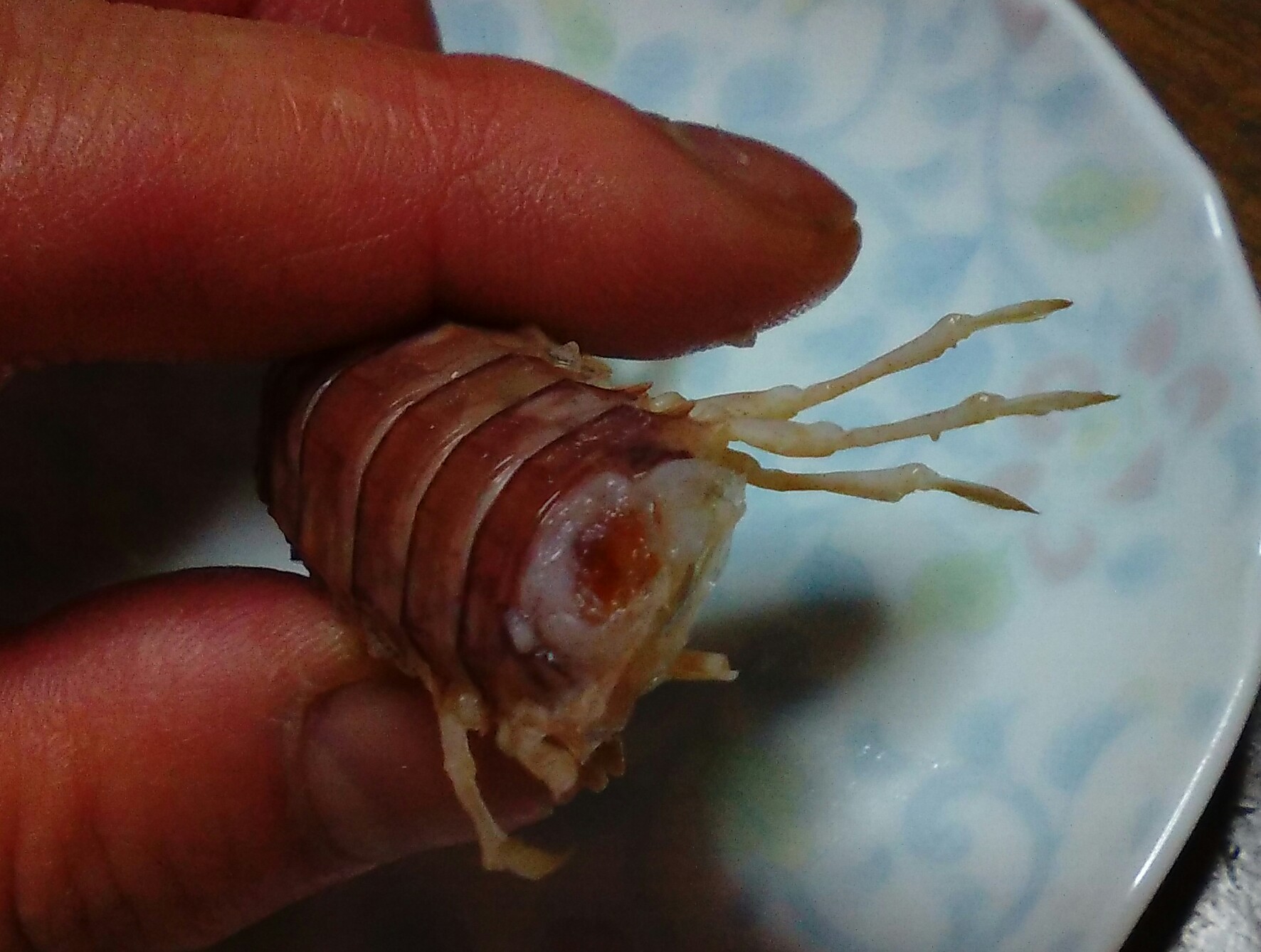 透き通った腹のシャコエビの中に、黄色く見えるのがたぶん卵。