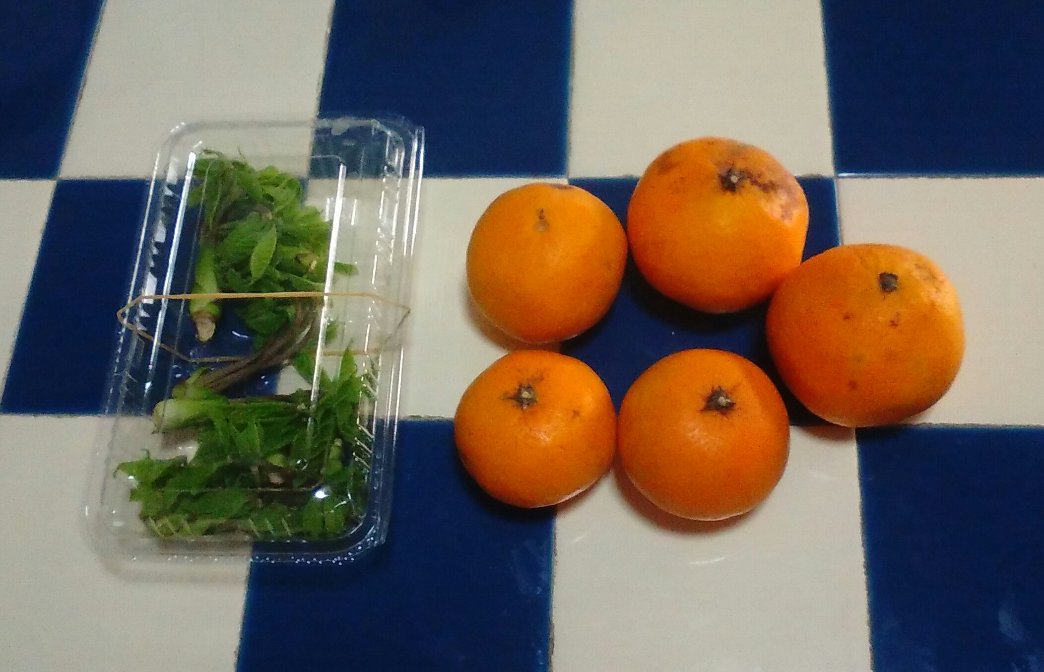 買った春キャベツと小松菜の袋に、もらった謎の山菜と清見オレンジを入れ、気のいいおっちゃんの八百屋を後にしました。