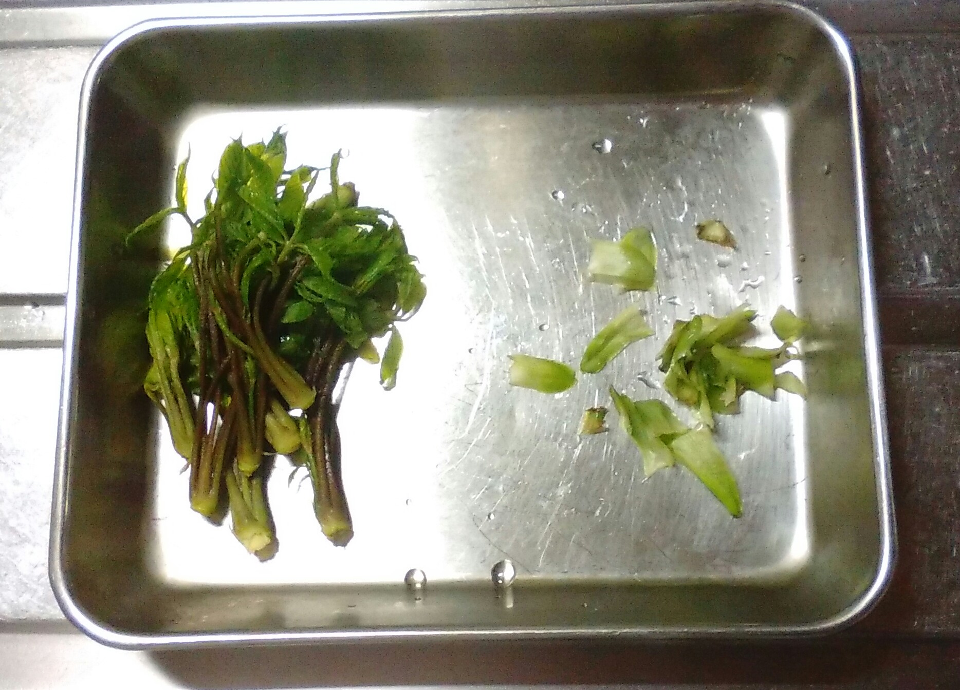 ①コシアブラは洗ってハカマを取りのぞく。
