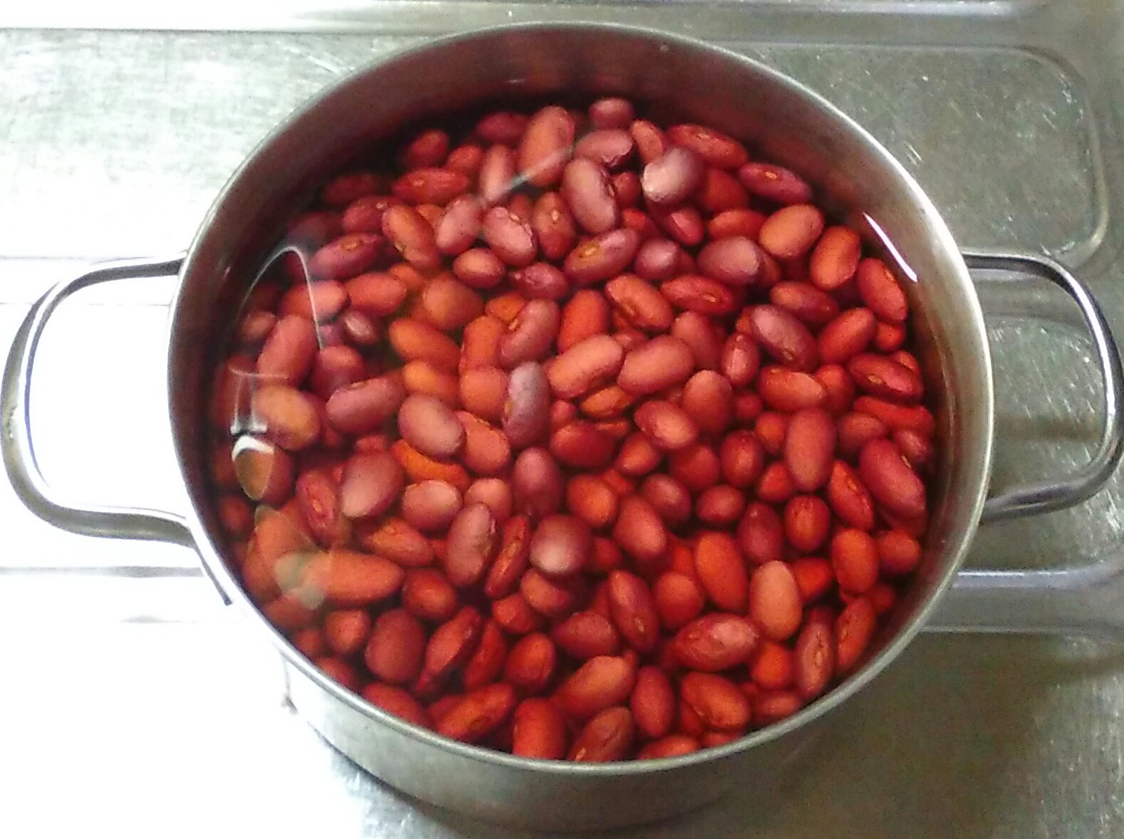 ①金時豆はざっと洗いたっぷりの水につけて一晩置いておく。