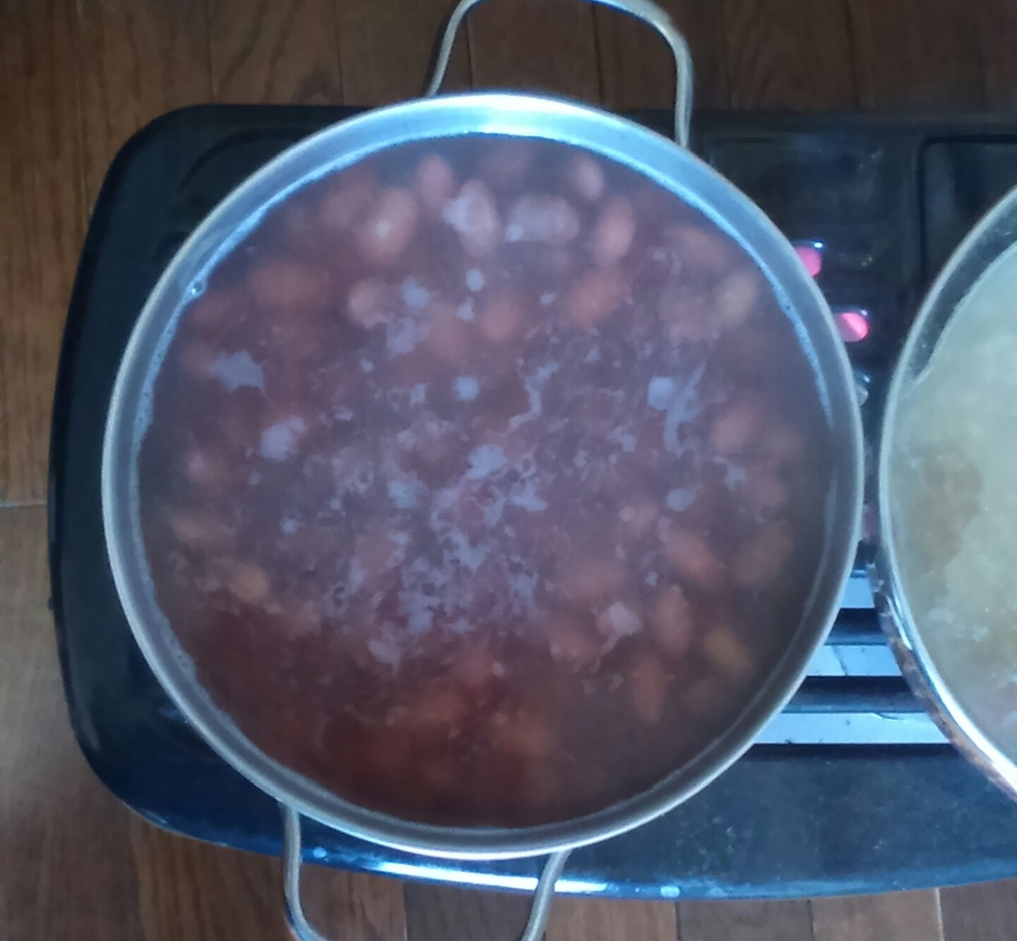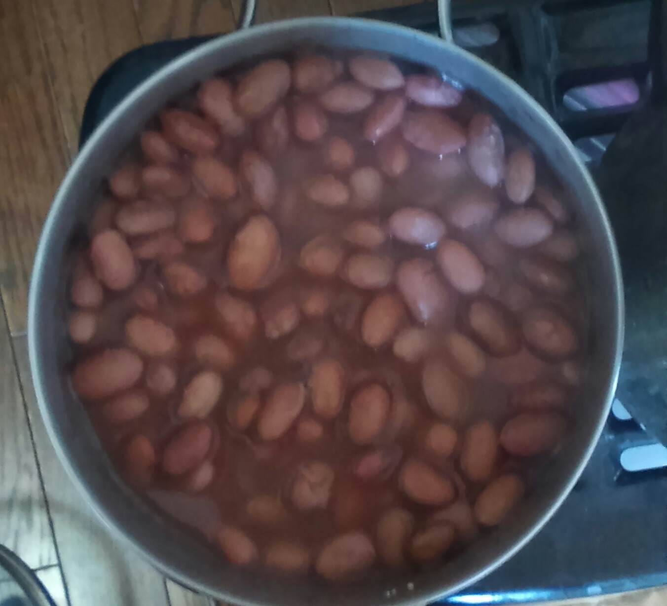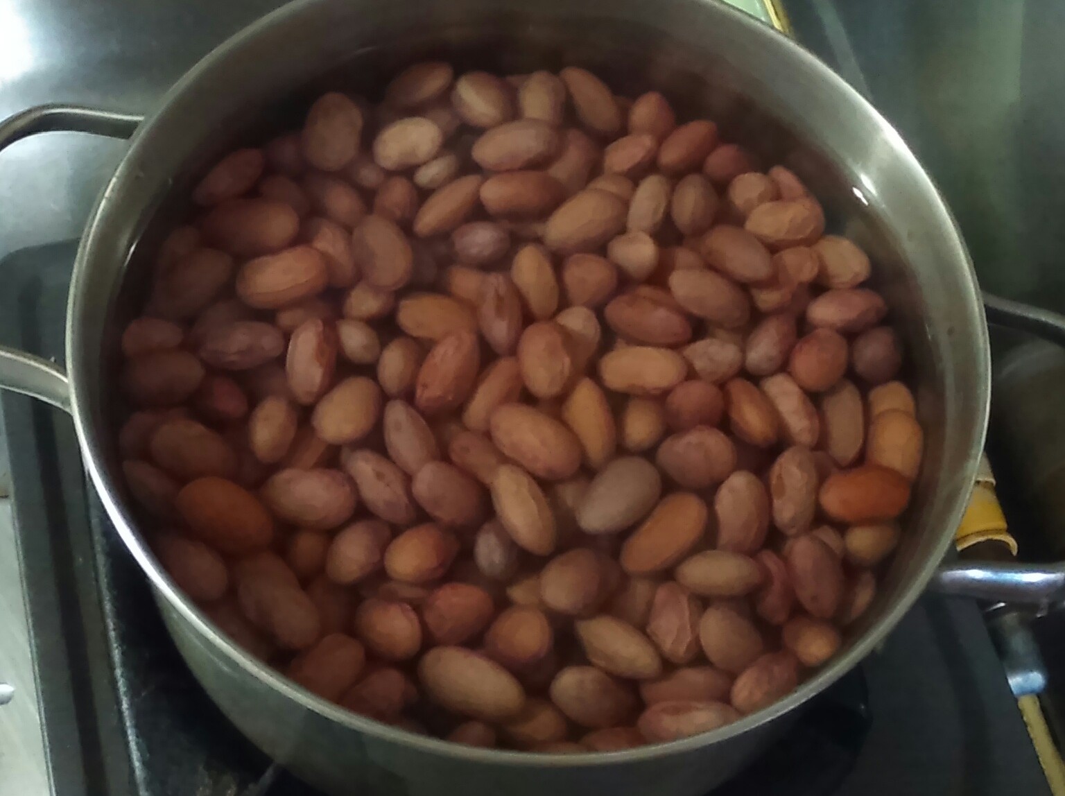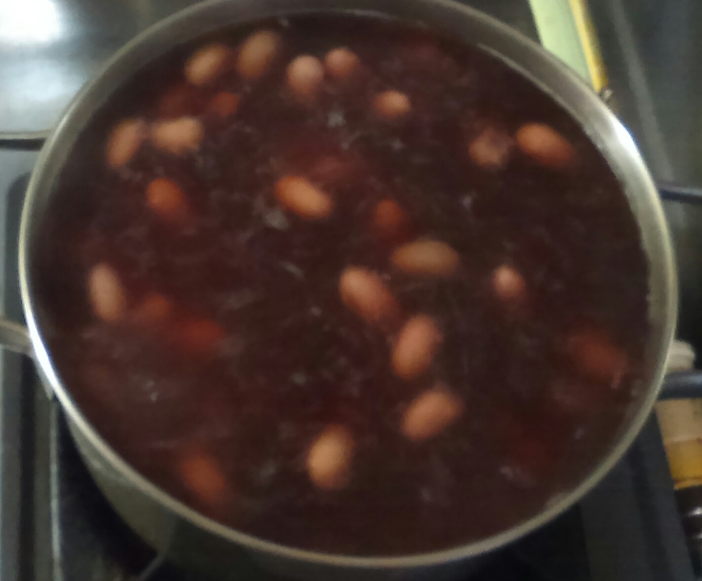 ⑤水が減って豆が顔を出すようなら差し水を足しながら、弱火で軟らかくなるまで煮る。