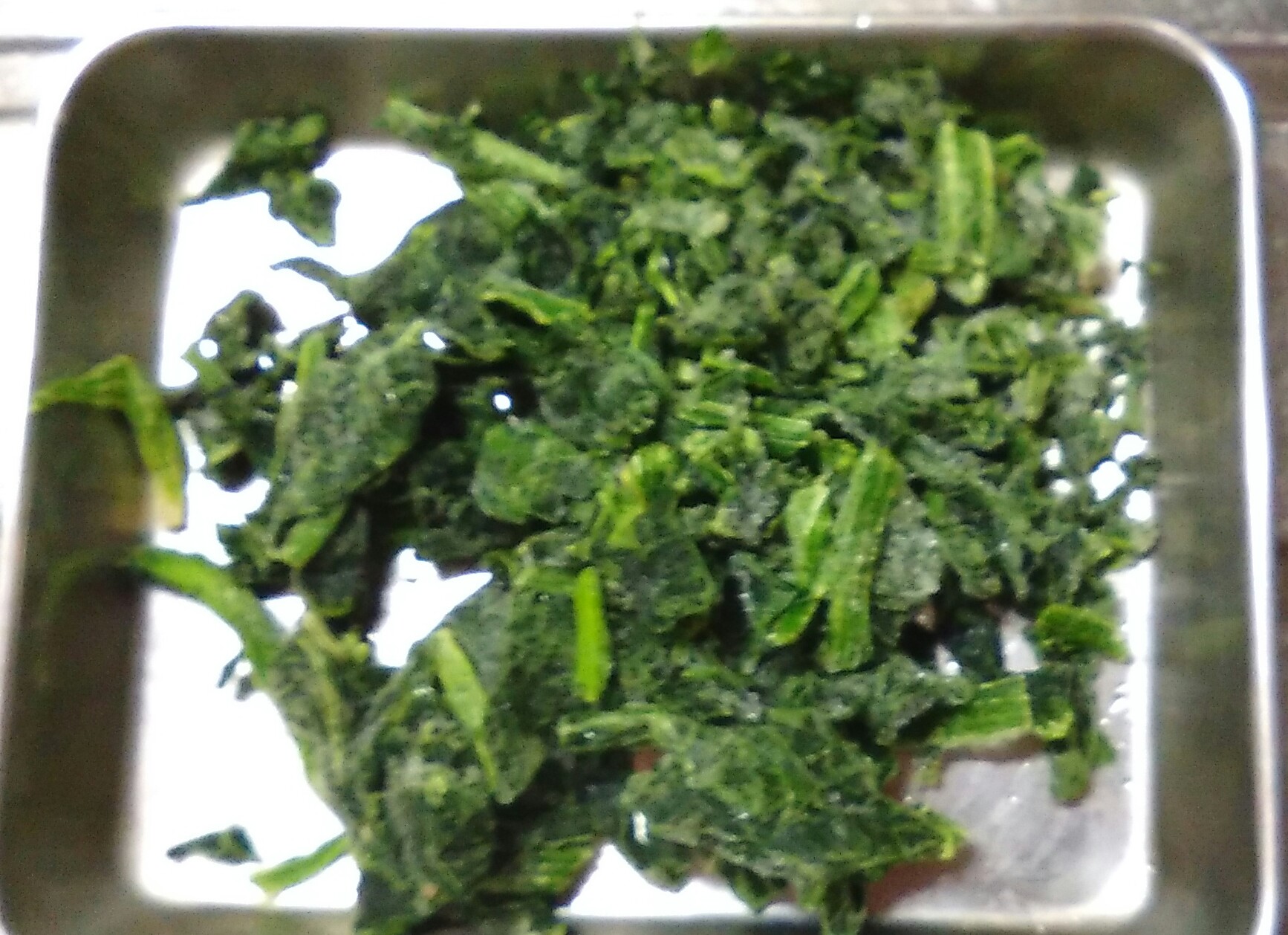 仕方ないので、ホウレン草はコープで安いときに買い置きしてある冷凍ホウレン草を使いました。